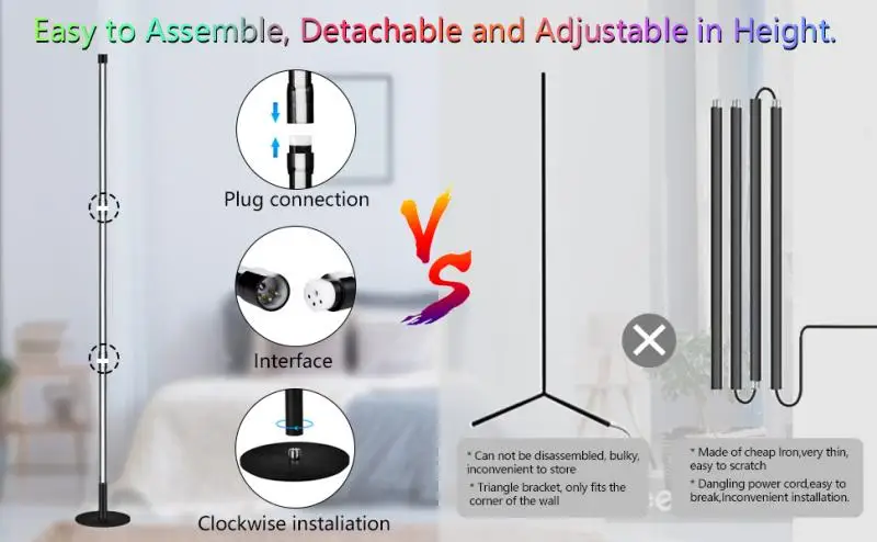 Красочный светильник S и 358 видов эффект-RGB угловой напольный светильник создает различные настроения и атмосферу с тысячами калейдоскопических эффектов. 358 видов эффектов на светильник на выбор, меняйте светильник в соответствии с различными сценами.