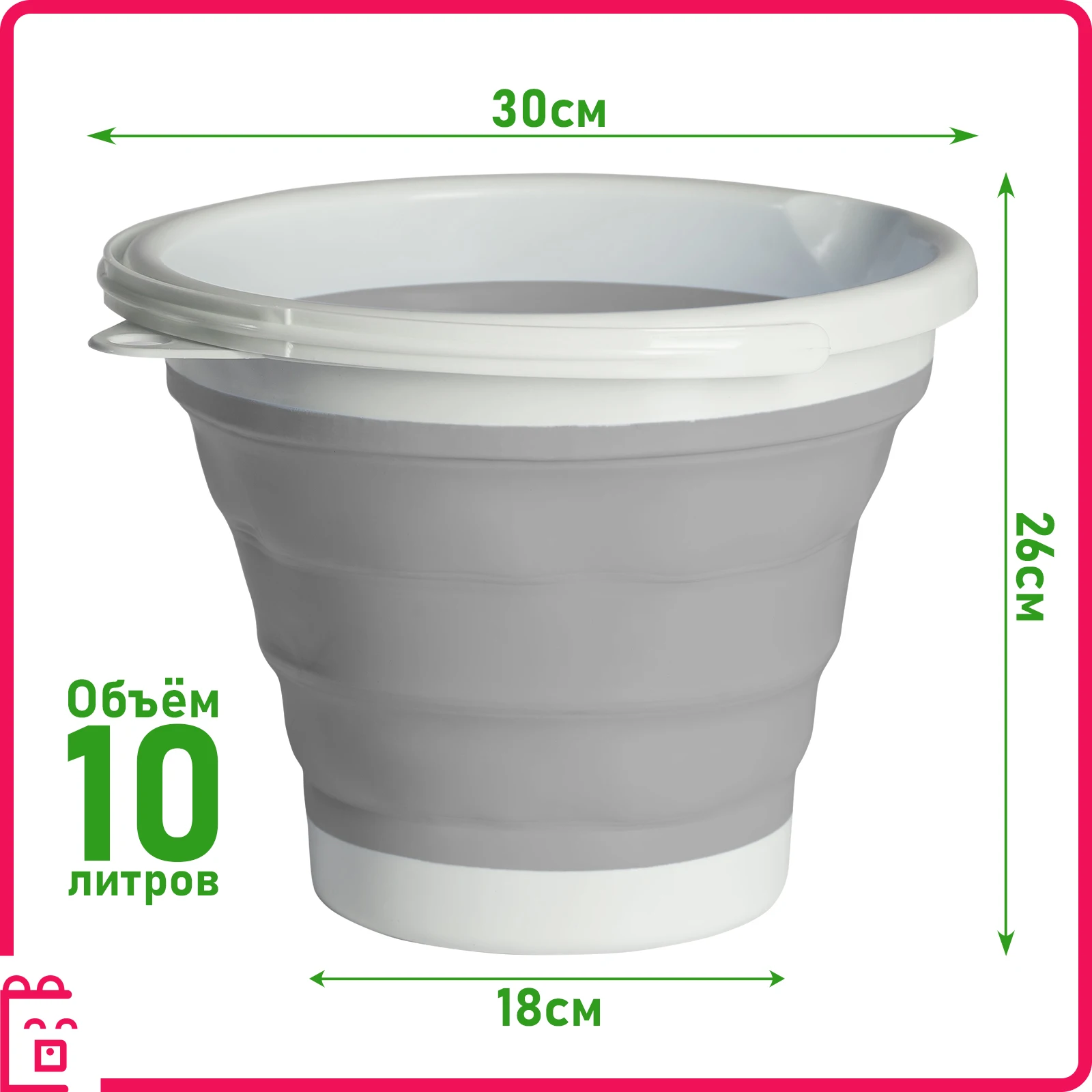 Ведро силиконовое складное 10л серое, Складное ведро, Силиконовое ведро, Складное ведро для воды ванной кухни рыбалки