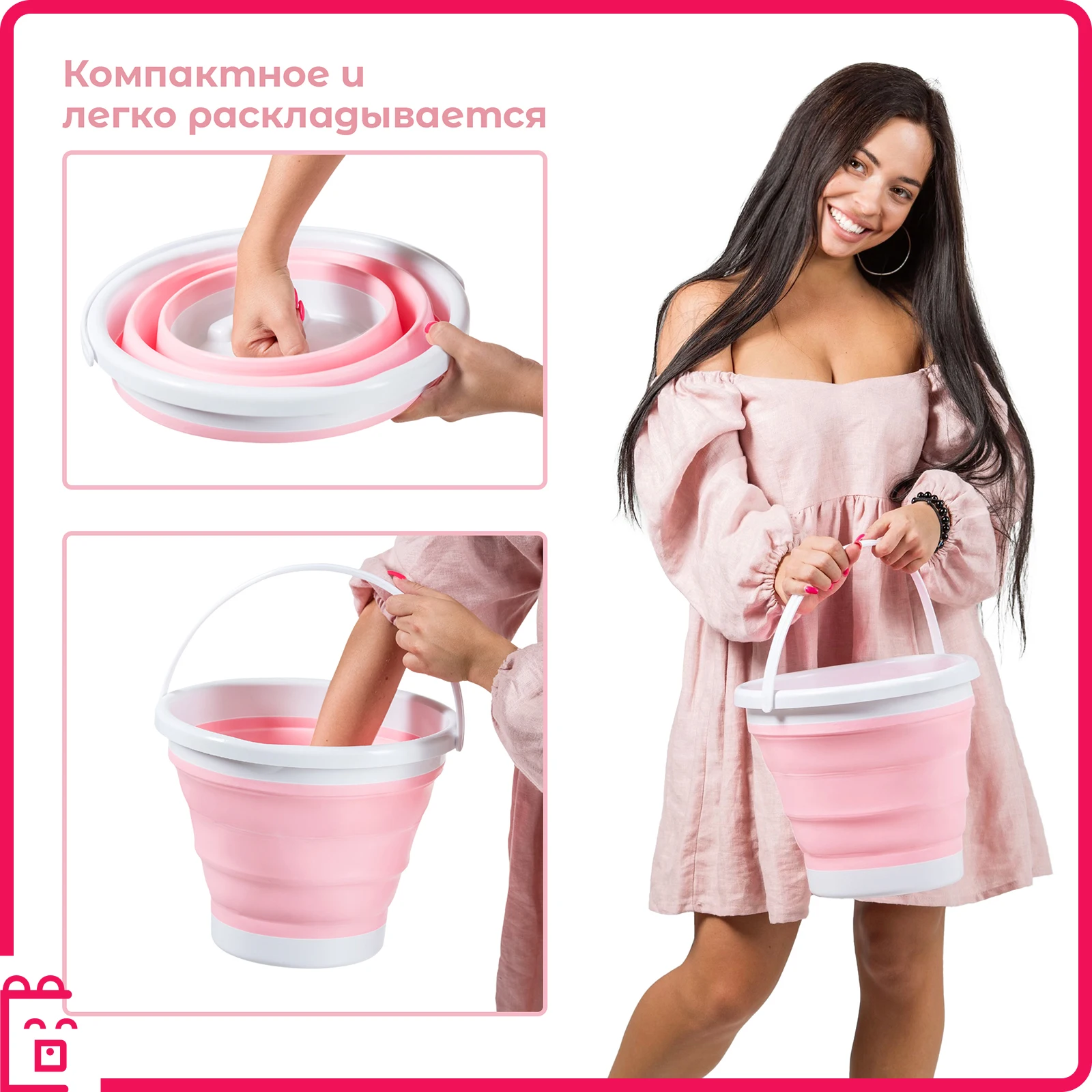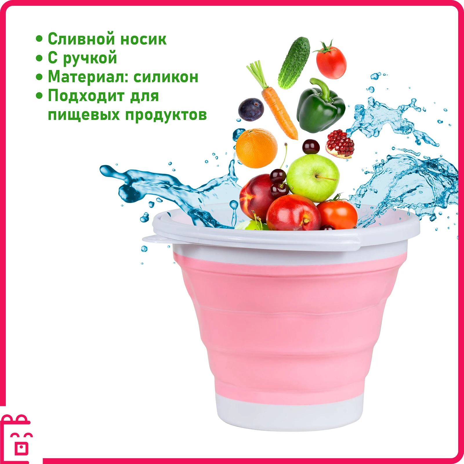 Ведро силиконовое складное 10л розовое, Складное ведро, Силиконовое ведро, Складное ведро для воды ванной кухни рыбалки