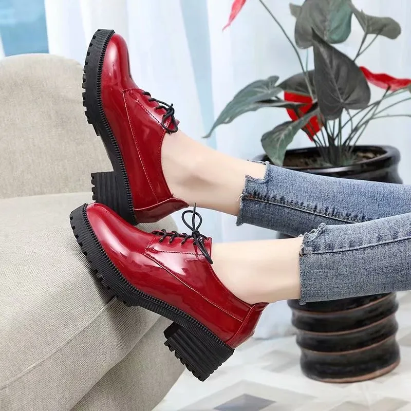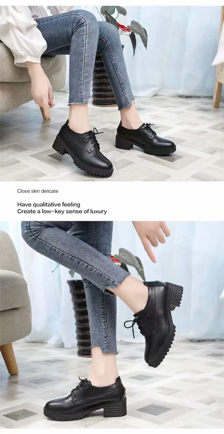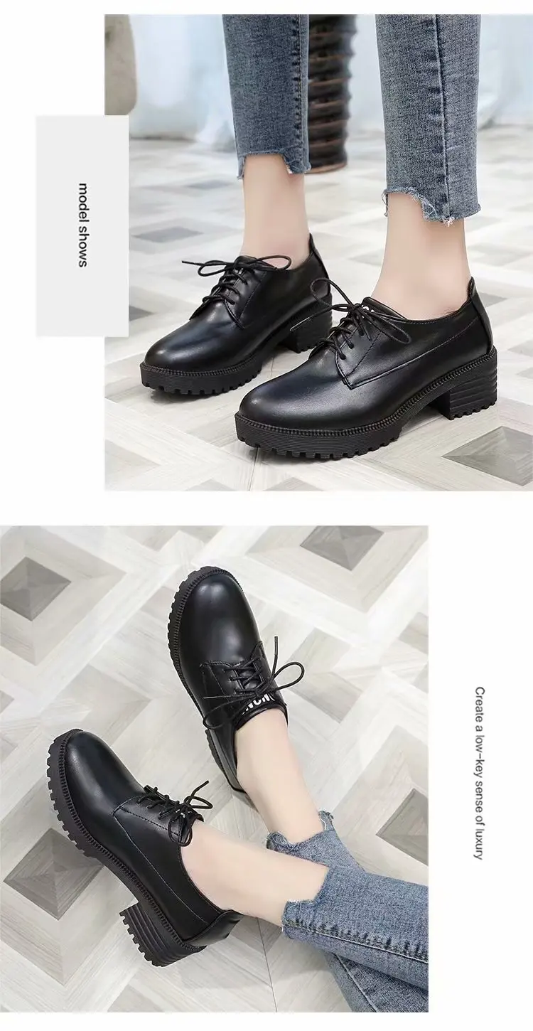 Новинка, весенние туфли-оксфорды для женщин, однотонные кожаные повседневные туфли, женские туфли на плоской платформе со шнуровкой и толстой искусственной кожей