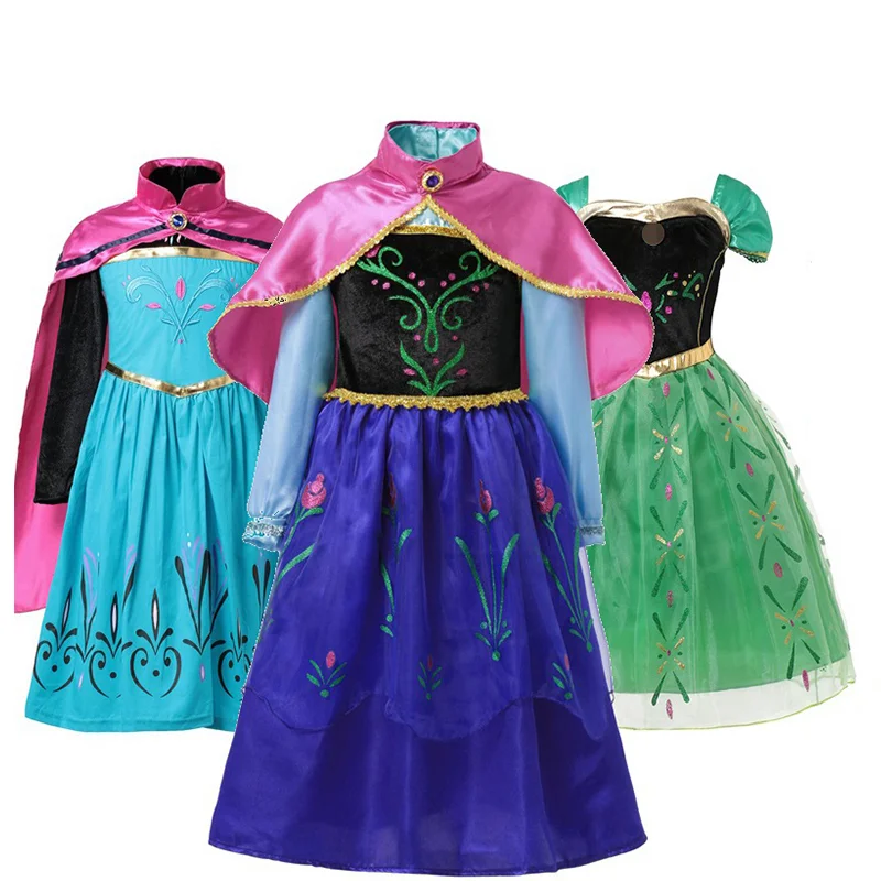 Детское Платье Принцессы Disney, карнавальный костюм Анны для детей, праздничное вечернее платье Снежной королевы с замороженными мотивами, одежда для девочек на день рождения