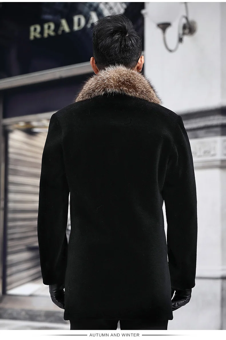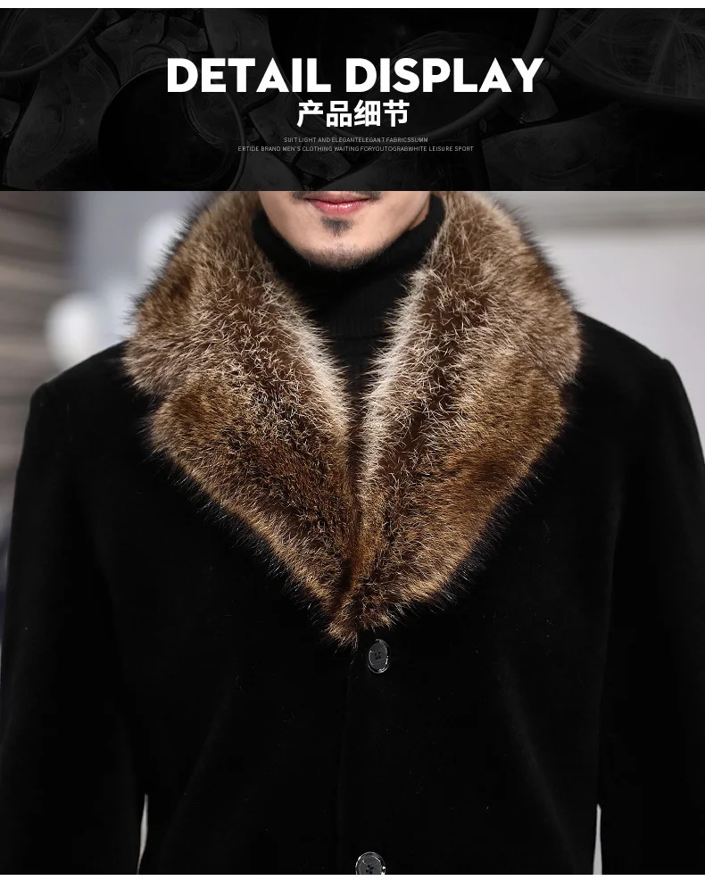 Мужское шерстяное пальто с меховым воротником, с отворотами и карманами