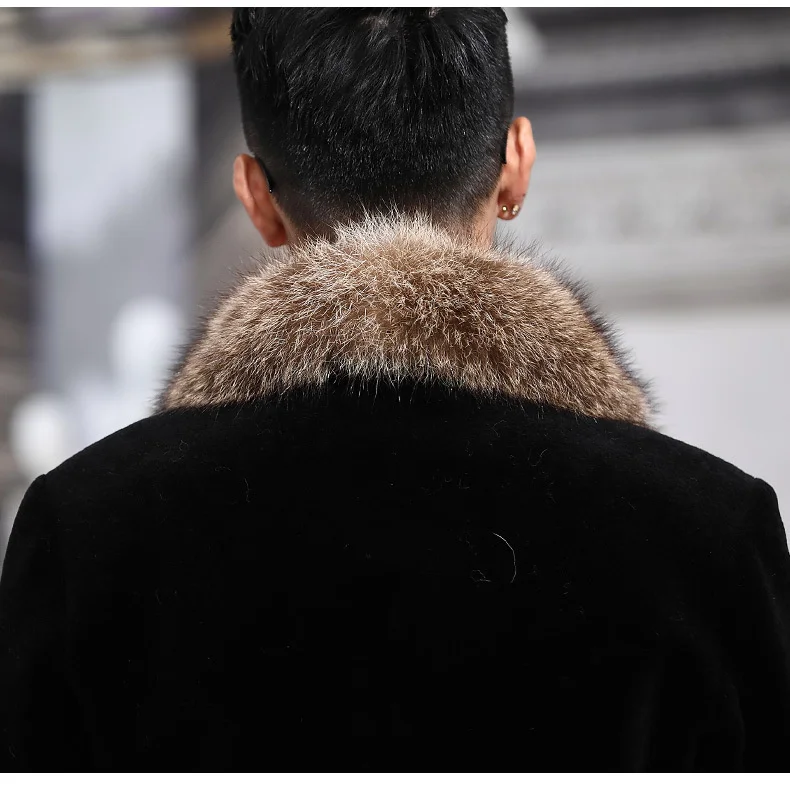 Мужское пальто с искусственным меховым воротником, осенне-зимнее па...