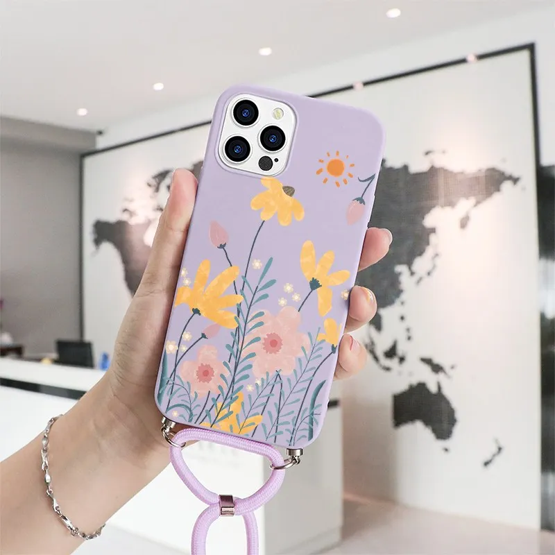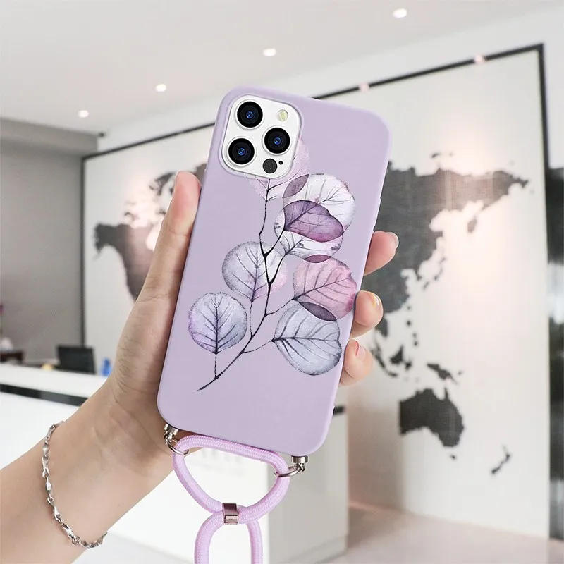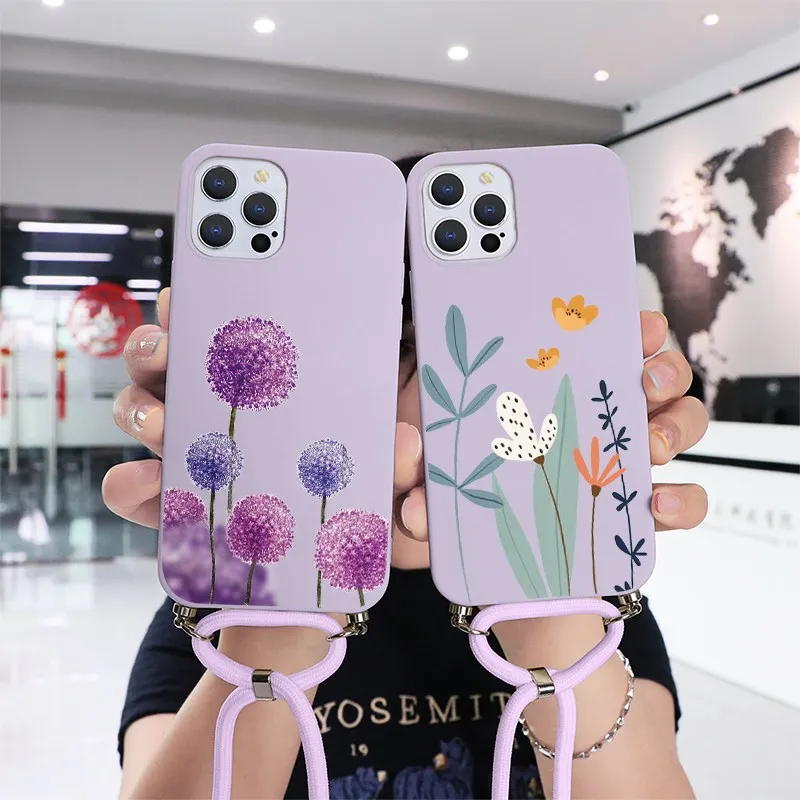Чехол с цепочкой и ожерельем для iPhone 12 Mini 11 Pro Max X XR XS Max 7 8 6 6s Plus 5 5S SE 2020, чехол с ремешком и шнурком из лавандового цветка