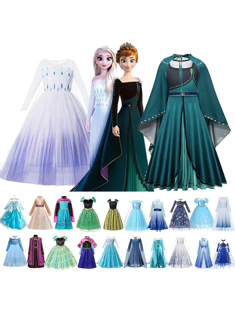 Платье принцессы Анны и Эльзы из «холодного сердца» для девочек, аксессуары для дня рождения, Детский Рождественский косплей, «Снежная коро...