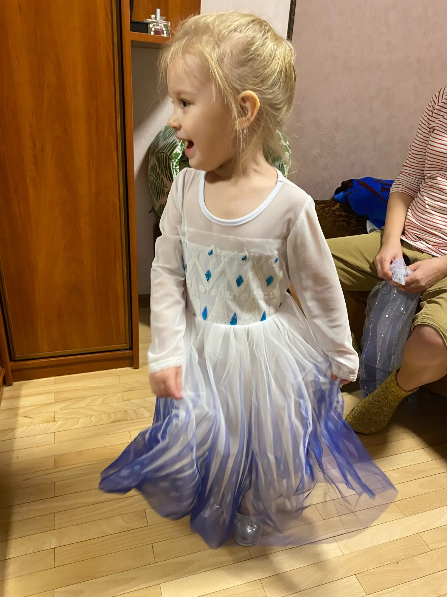 Большое спасибо продавцу! 5*!!! Отправил быстро, упаковано отлично в зип пакет! Все аккуратно! Платье эльзы красивое, полностью соответствует и размеру и картинке! Благодарю за подарочек! Еще и курьер привез на дом! Доставка в Красноярский край за 12 дней! Я в приятном шоке!! Супер!