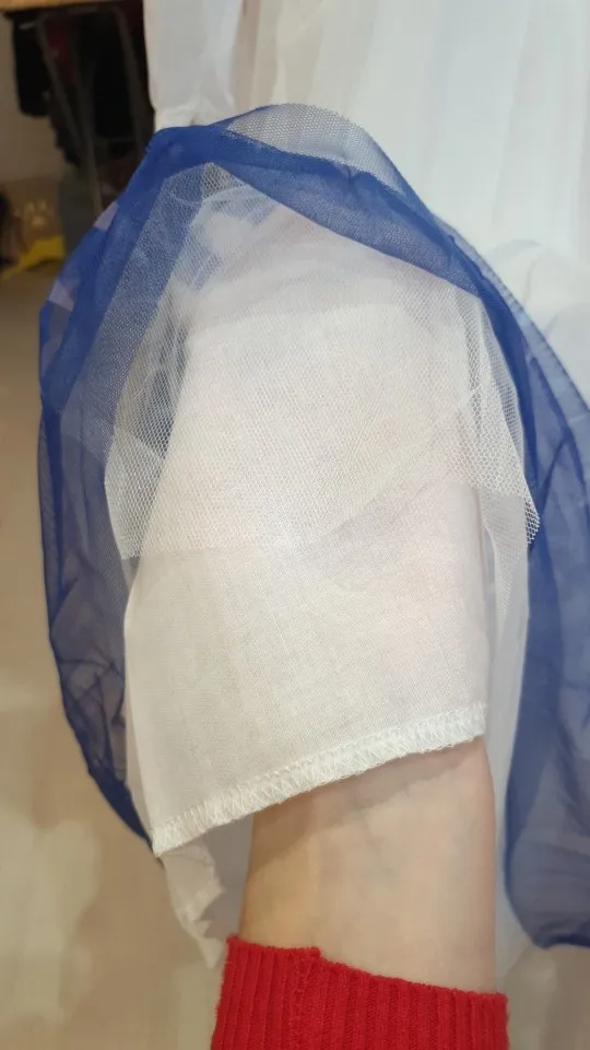 Спасибо за хорошее платье и за быструю доставку! приехало в Москву за 8 дней! голубая часть платья из хлопковой ткани. все остальное синтетика. Для дочери 120 см взяла размер 150. Получилось в пол. Хватит на долго!