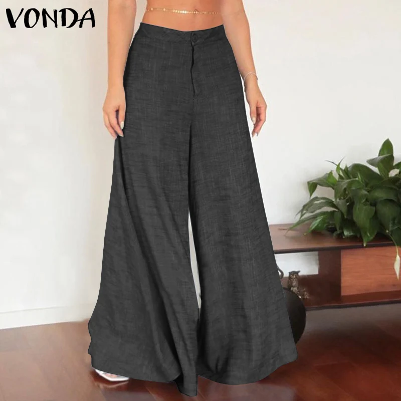 Женские Плиссированные широкие брюки 2021 VONDA повседневные однотонные длинные брюки Женские панталоны Палаццо женские брюки на молнии с высокой талией брюки