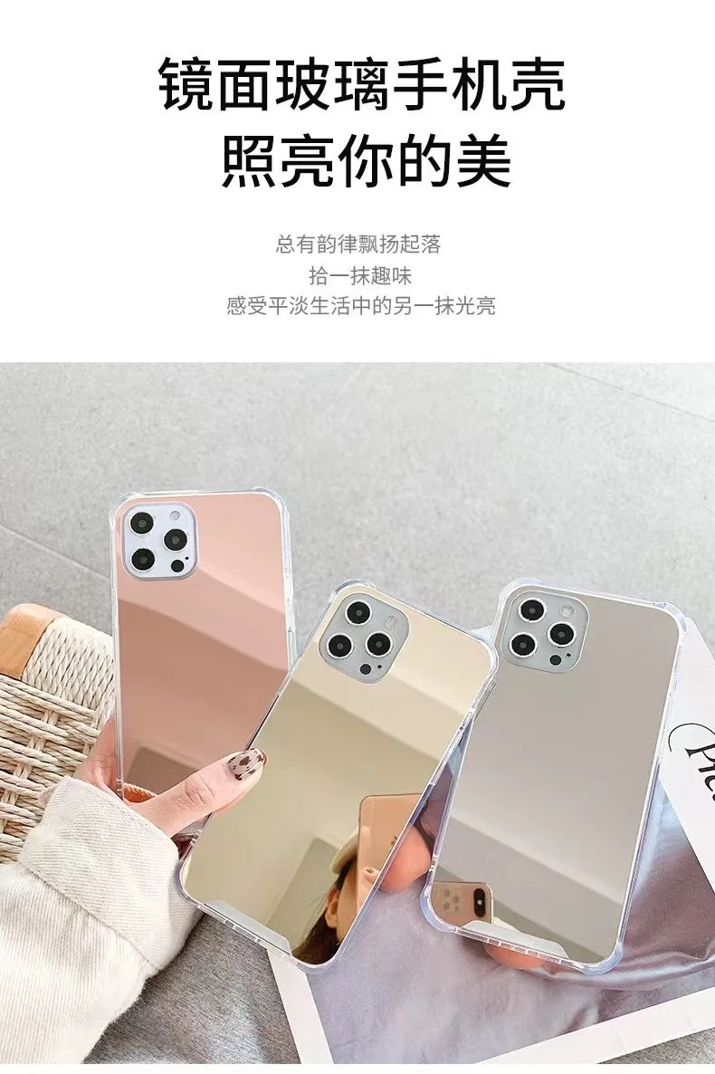 Стеклянное зеркало чехол для телефона подходит для iPhone11 12 Pro Max 6P 7P 8P Xs Max однотонный простой защитный чехол с подушкой безопасности и защитой от падения