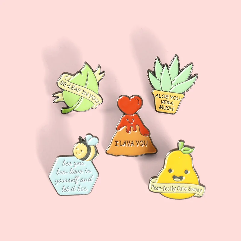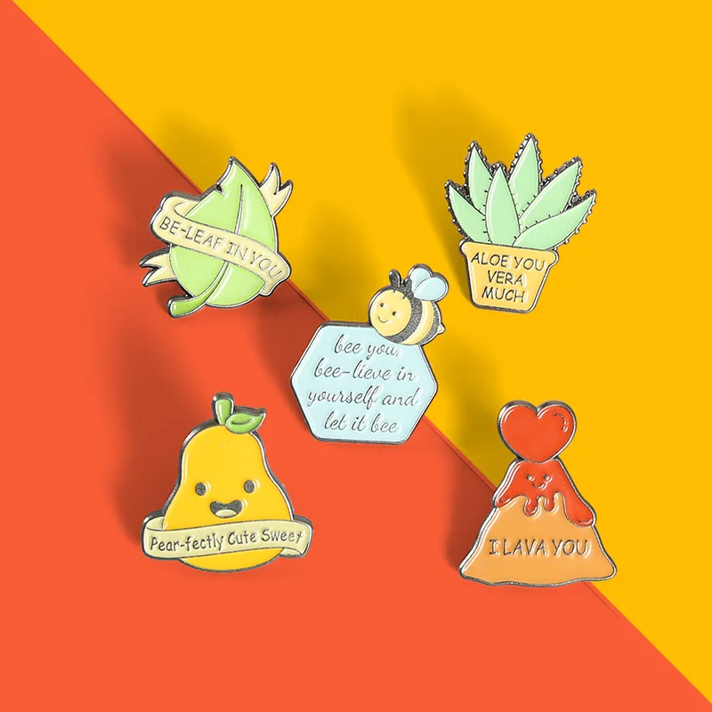 Милая брошь с алоэ из мультфильма, брошь в форме сердца, Вулкан, милая желтая брошь в виде груши, милая желтая брошь в виде груши