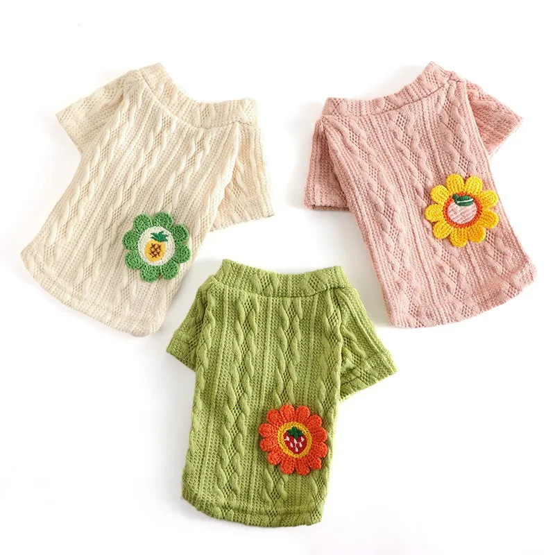 Симпатичный свитер с цветочным рисунком для собак, зимняя одежда дл...