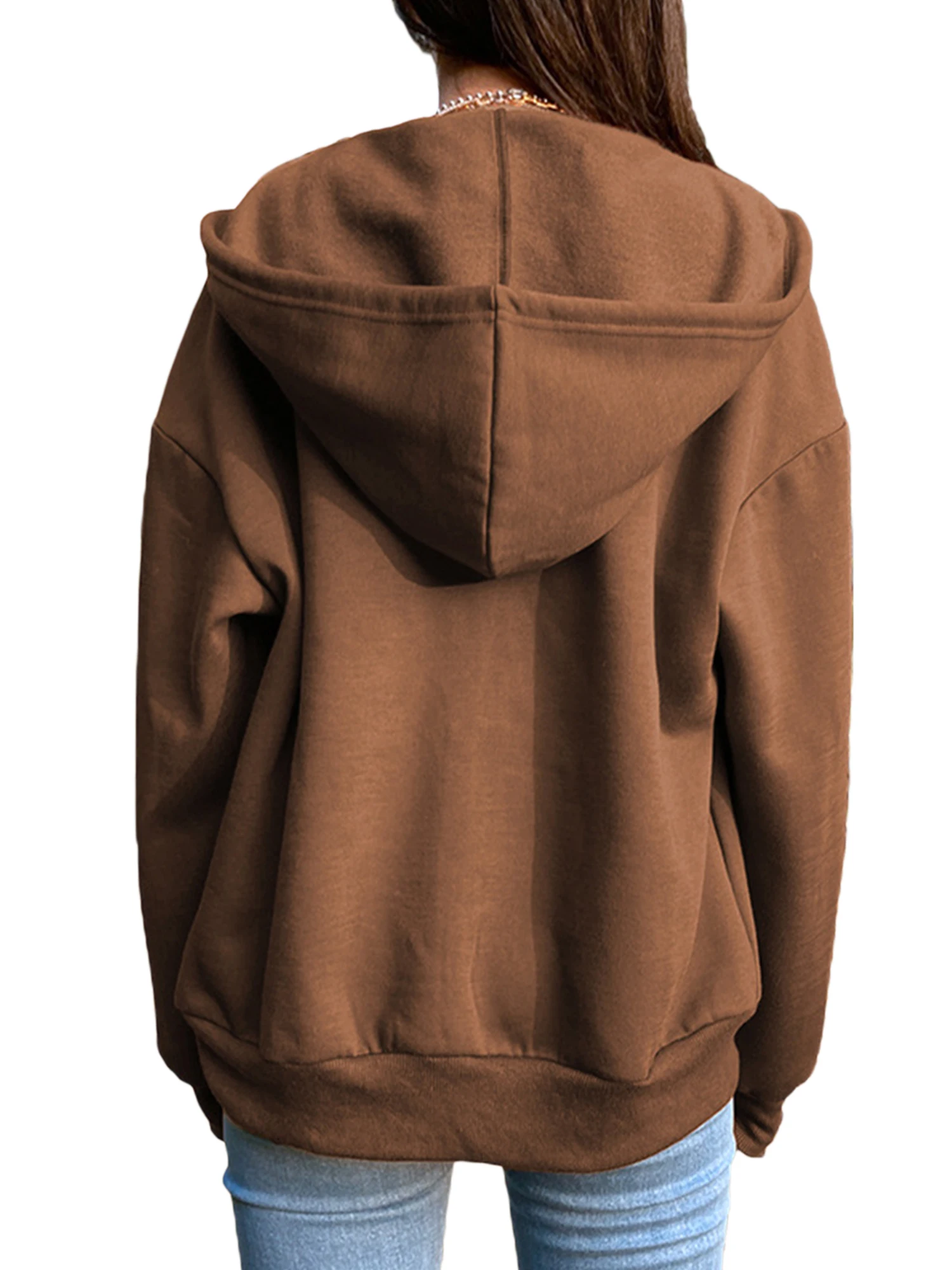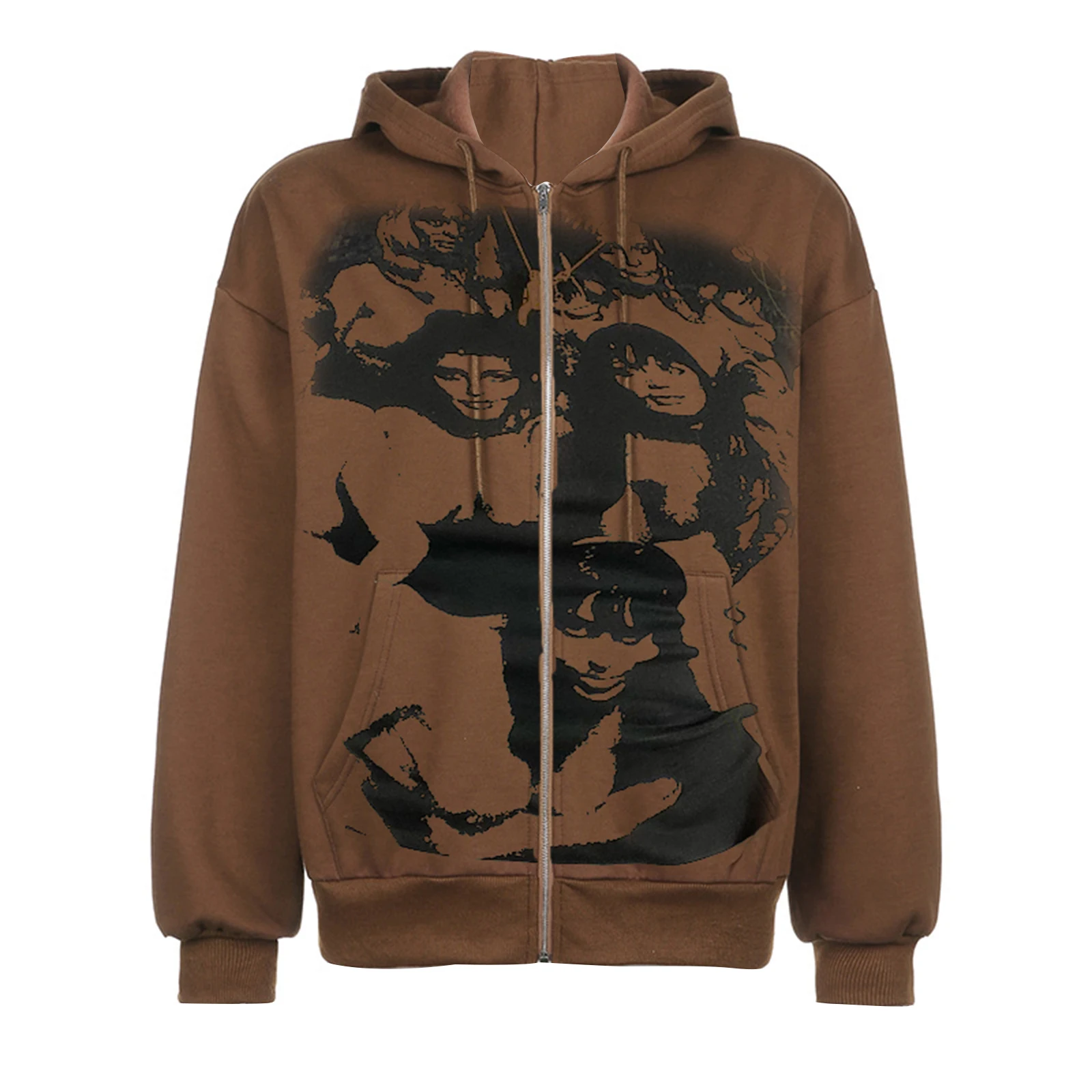 Пальто с капюшоном и длинными рукавами, на молнии и с карманами, с рисунком портрета, простое и стильное.