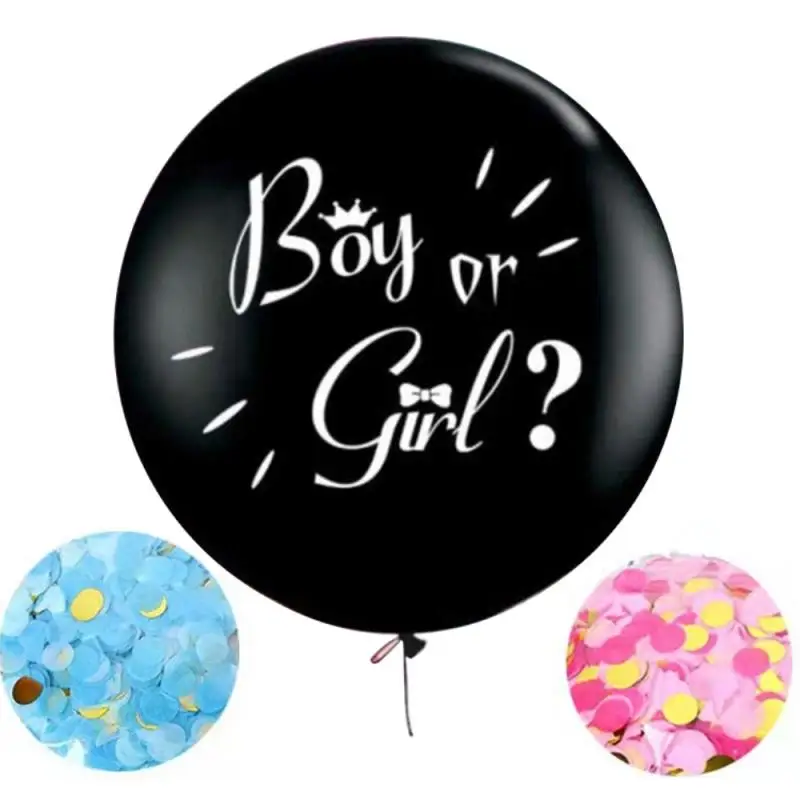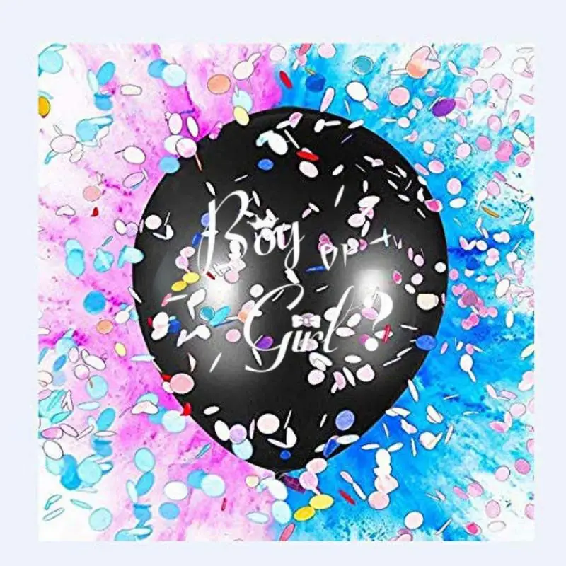 3. Комплект содержит 1 36 дюймов черные воздушные шары с каждой пачке в синем и розовом цветах конфетти. Все в одном пакете!