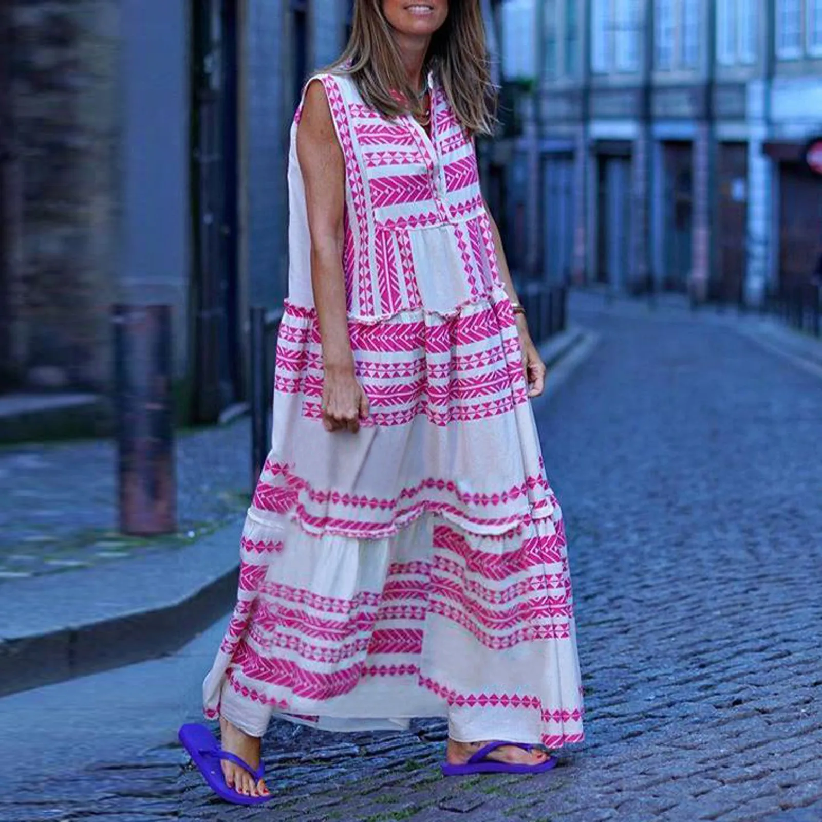 Летнее повседневное пляжное длинное платье в богемном стиле, женское свободное темпераментное платье макси на шнуровке с волнистым вырезом, плиссированное платье Holdiay Vestidos