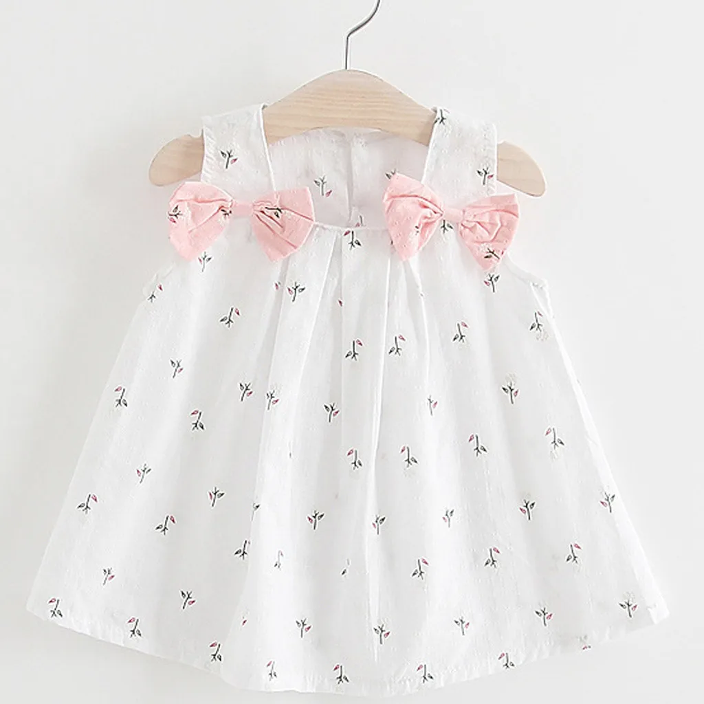 Летние платья принцессы с цветочным принтом, однотонное праздничное платье на бретелях с бантом для маленьких девочек, повседневные платья без рукавов для девочек