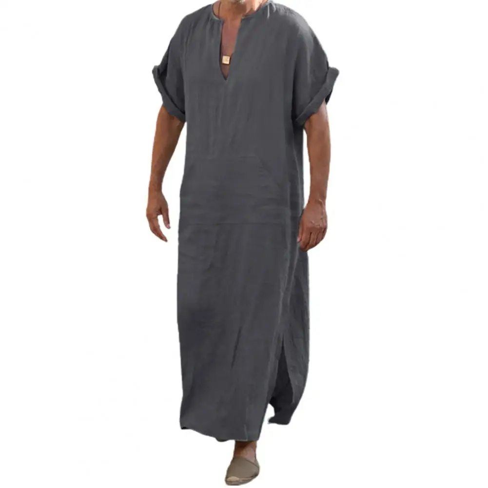 Халат мужской, летний, с глубоким V-образным вырезом, коротким рукавом, с разрезом сбоку, свободный, традиционная ретро-одежда, 2021