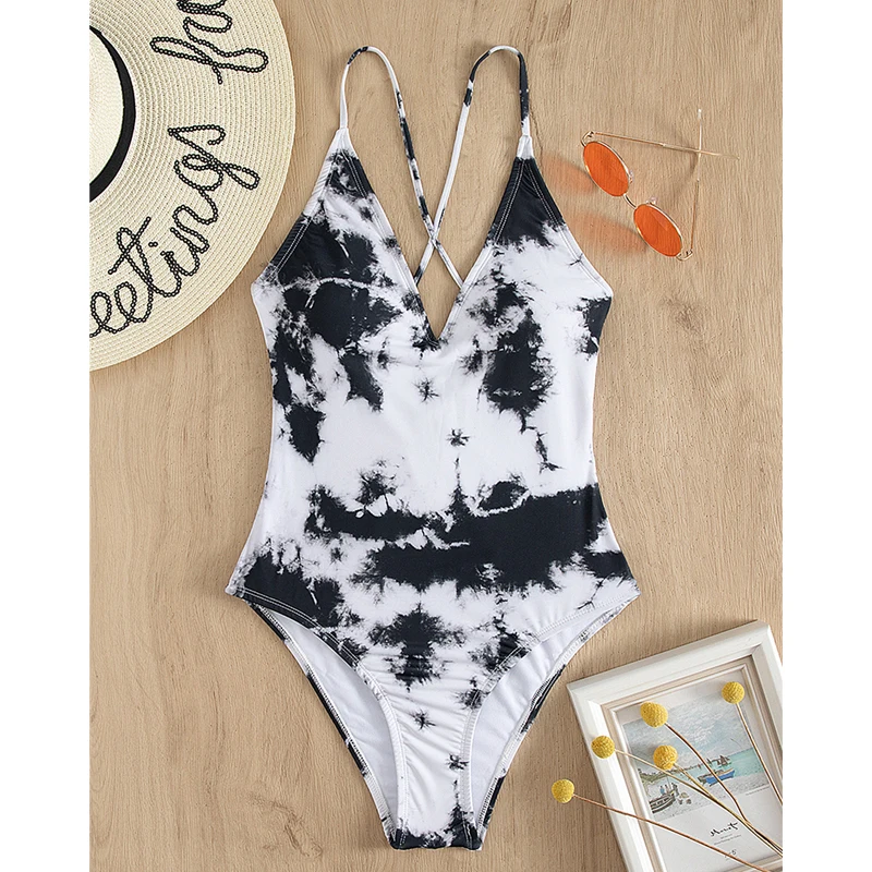 Женский слитный купальник, с перекрестной завязкой, с принтом тай-Дай, пляжная одежда, лето 2021