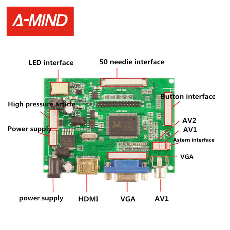Плата контроллера LCD TTL LVDS, HDMI VGA 2AV 50 PIN для AT090TN10 T...