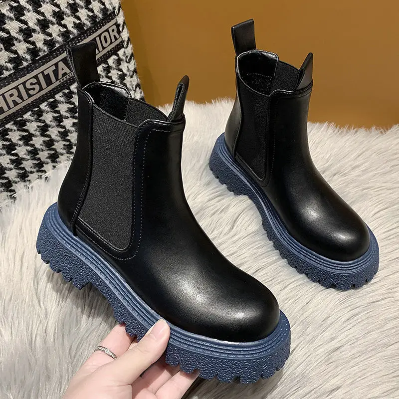 Женские ботинки на толстой подошве, полуботинки-мартинсы средней дл...