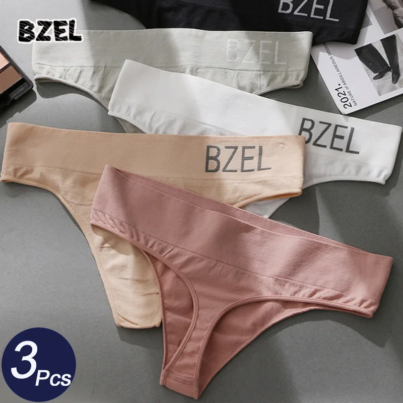Трусики-стринги женские бесшовные из хлопка со средней посадкой, 3 шт.лот