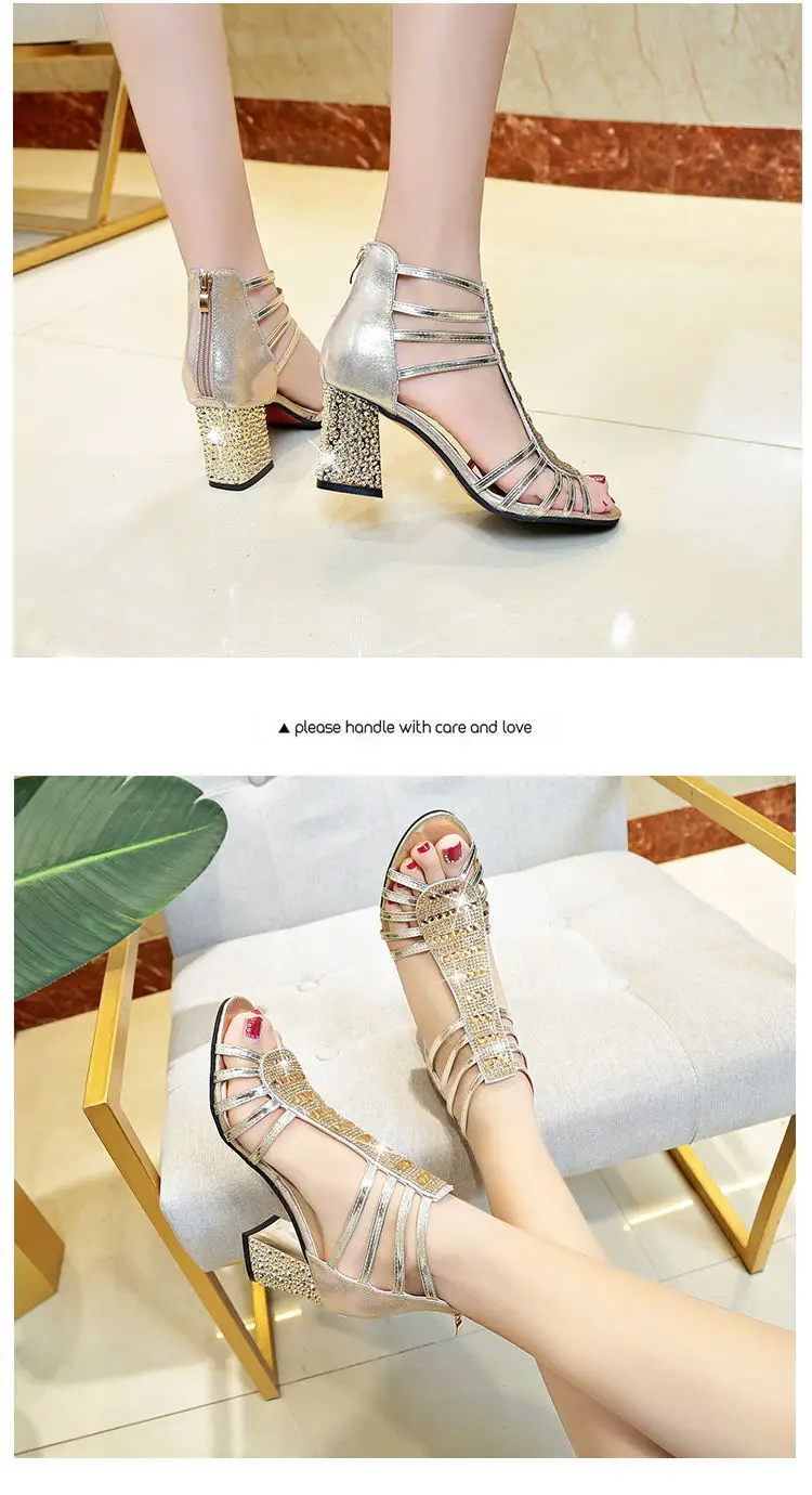 Стразы, сандалии-гладиаторы на высоком каблуке, женская обувь на вы...