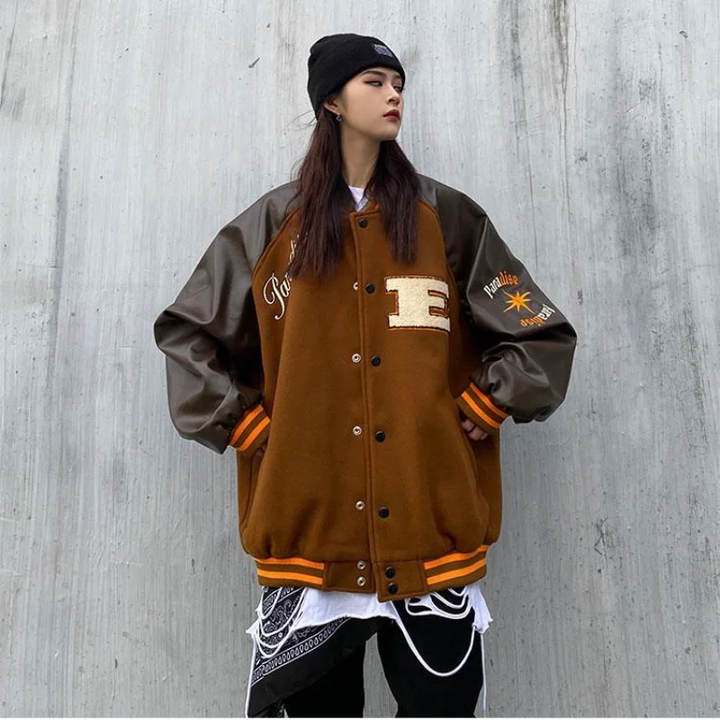 Женская куртка-бомбер большого размера, Свободная Женская бейсбольная куртка с вышивкой, однобортная уличная мода, осеннее пальто для женщин 2021