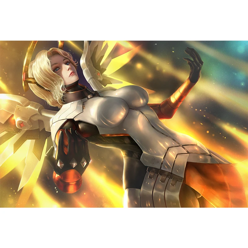 Печать на холсте Аниме игра Overwatch золотой ангел сексуальная девушка художественный плакат 40x60 50x70 60x90 пользовательская гостиная декоративная картина для спальни