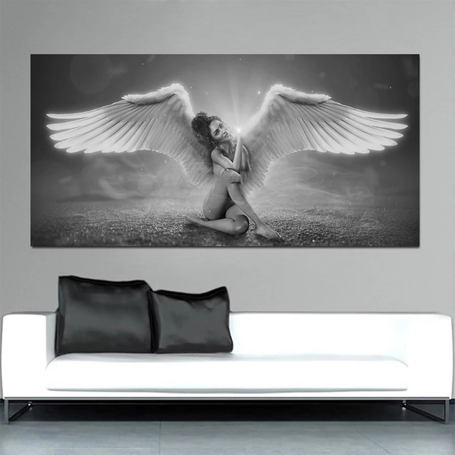 Обнаженные женщины с крылом 5d diy Бриллиантовая фотовышивка черно-белые ангельские постеры Стразы искусство домашний декор