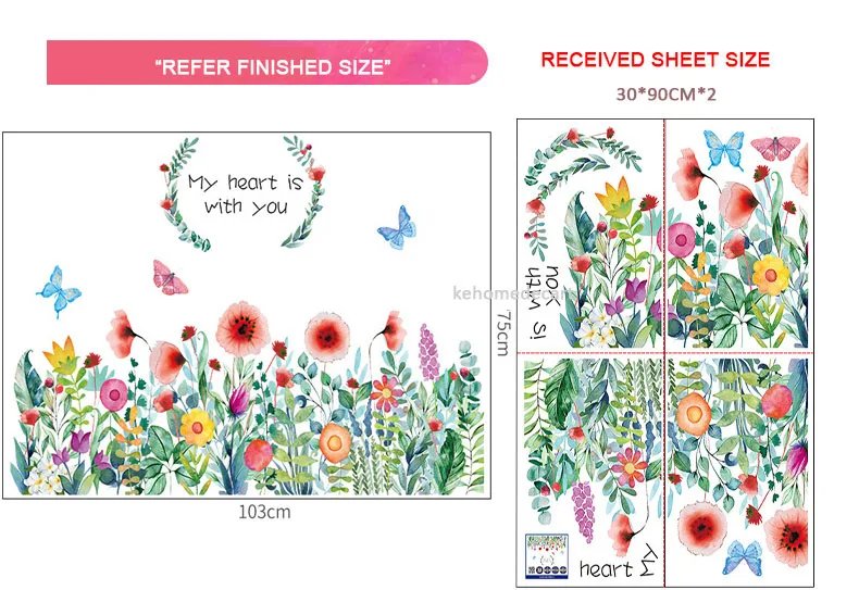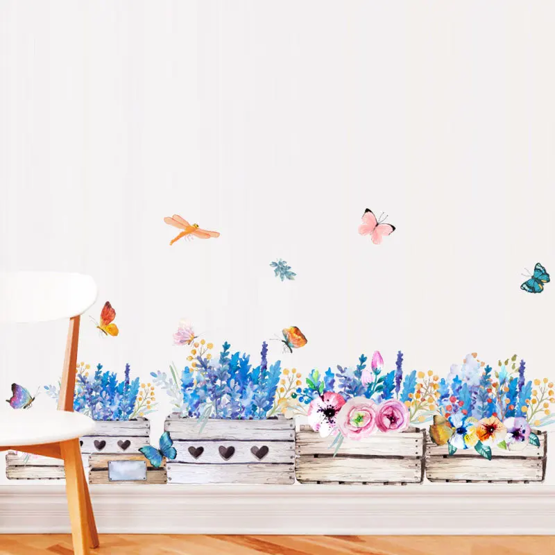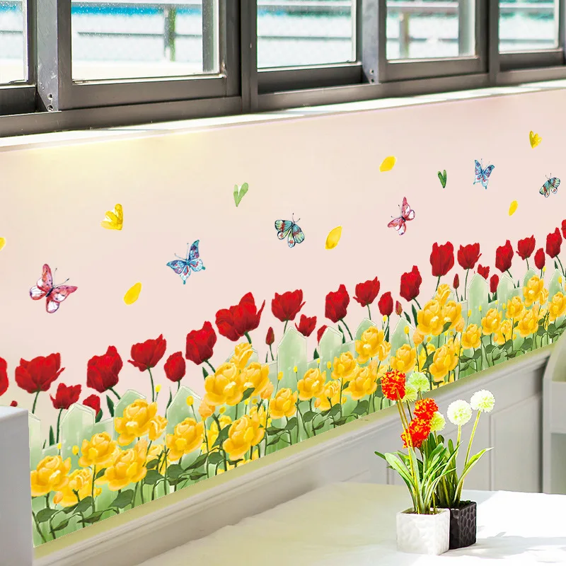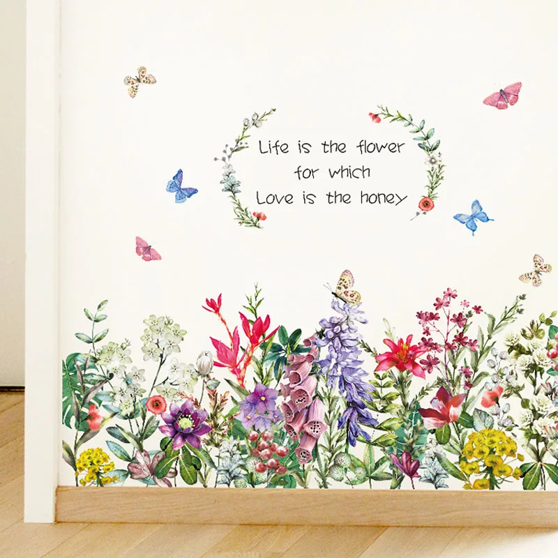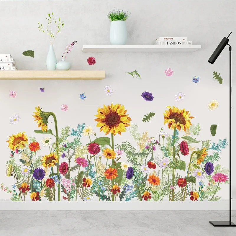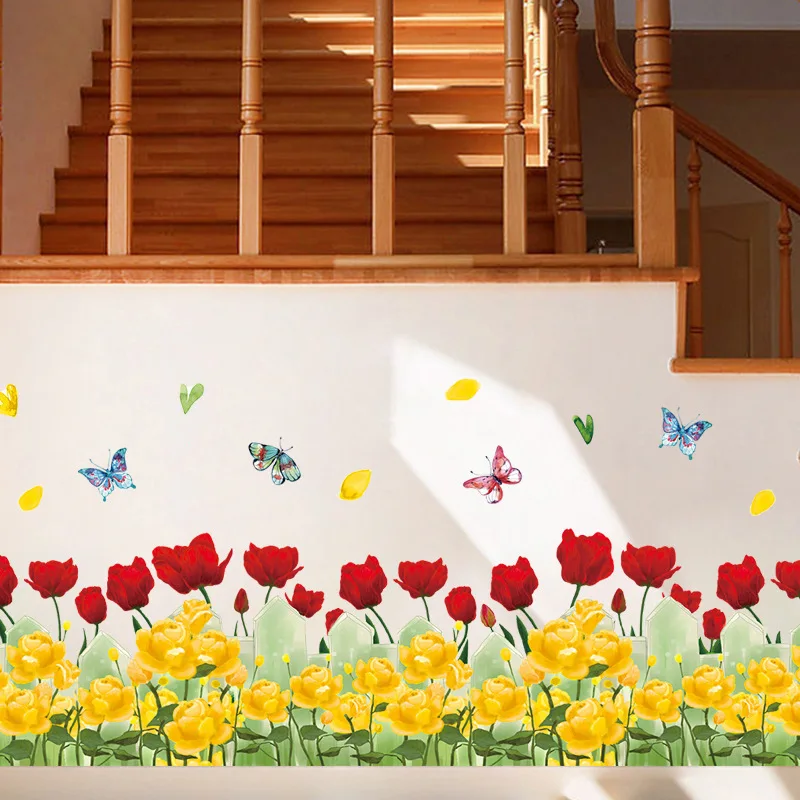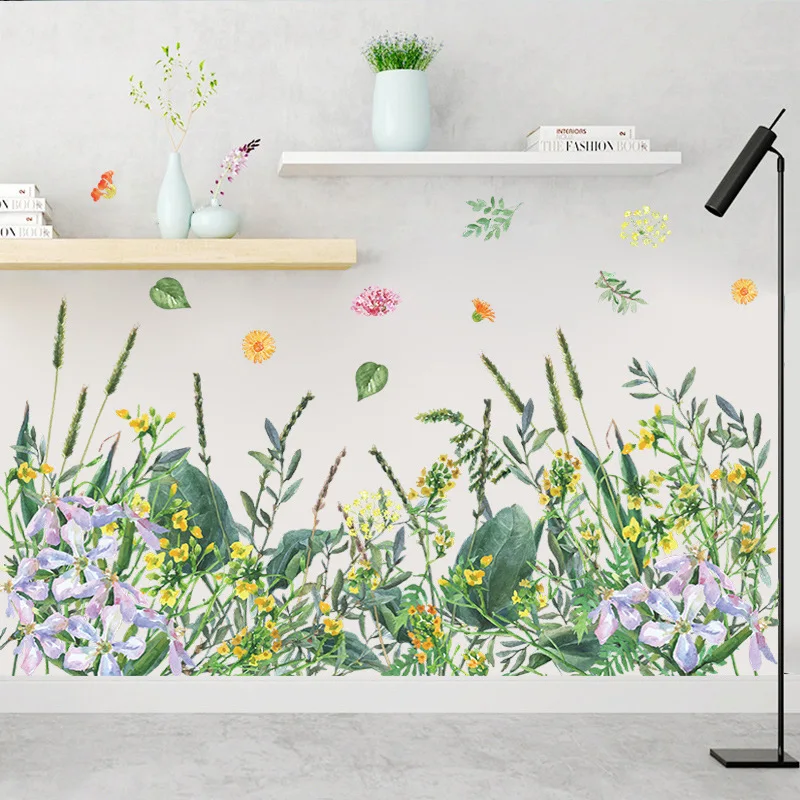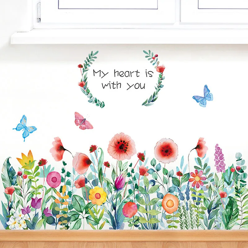 DIY акварельные розы наклейки на стену плинтус линия декоративные крыльцо коридор самоклеющиеся трава Подсолнух основа украшения