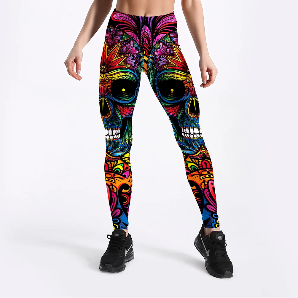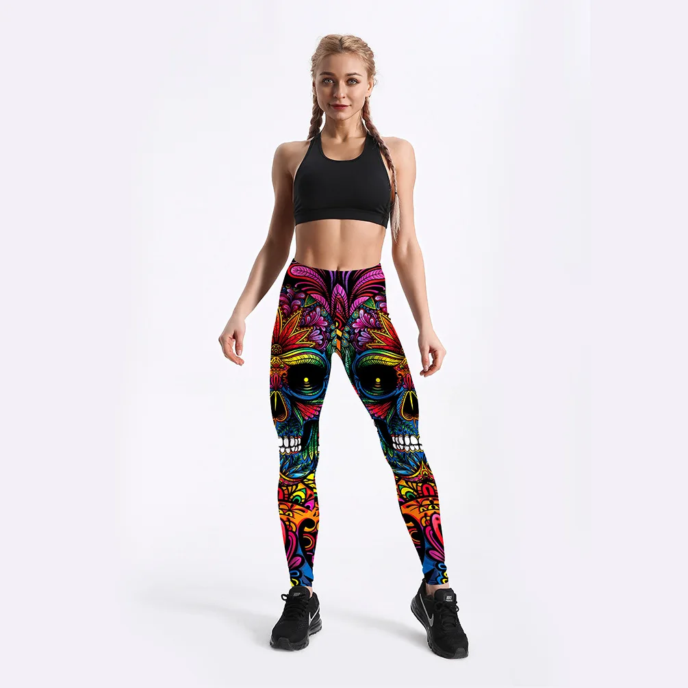 Леггинсы женские, эластичные, 9 точек, с принтом черепа