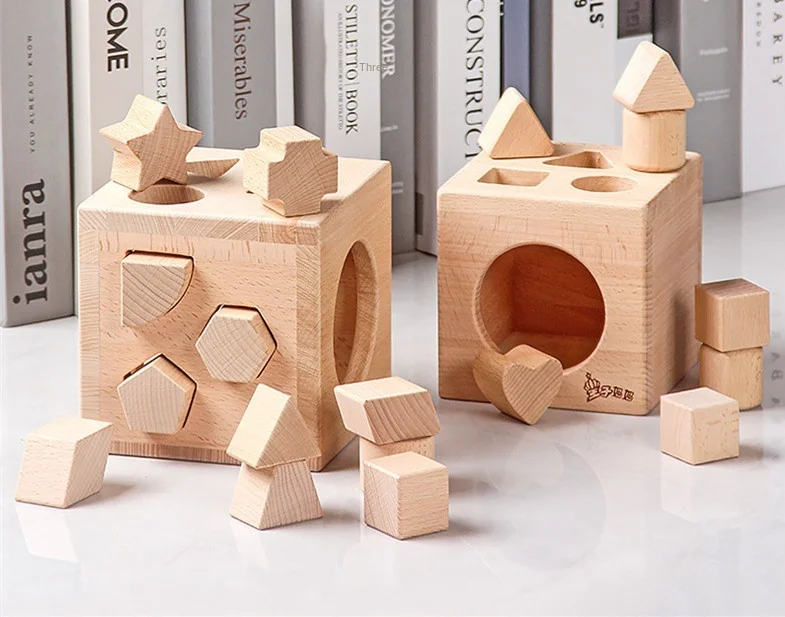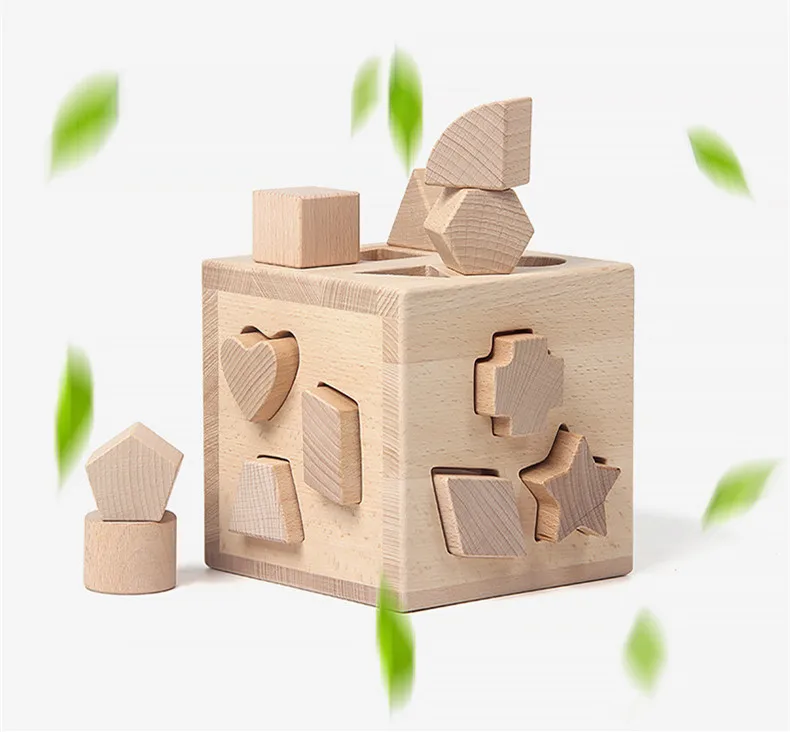 Деревянный Детский подарок Монтессори, деревянная окрашенная Первичная форма с коробкой-пазлом, геометрическая форма, строительные блоки, обучающие игрушки