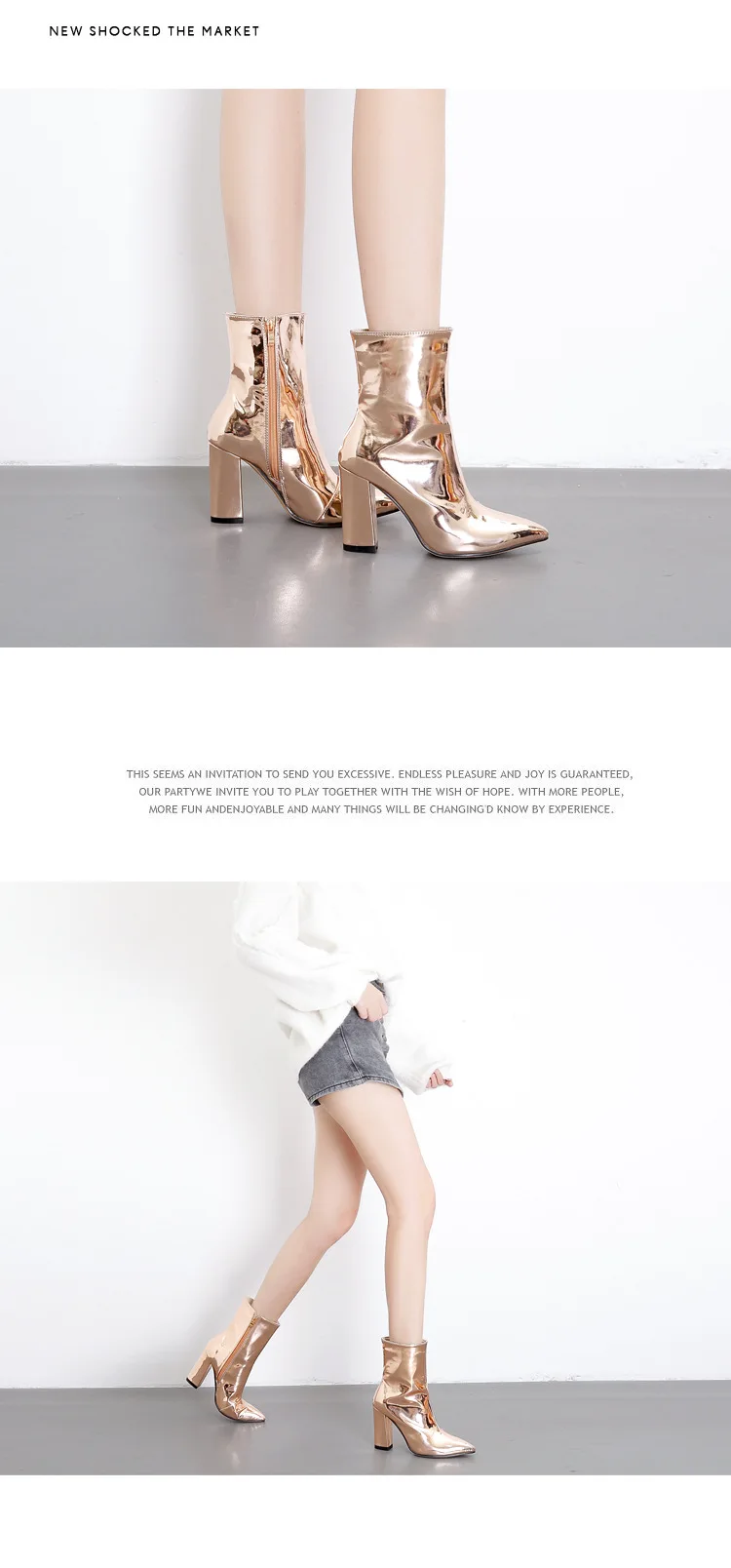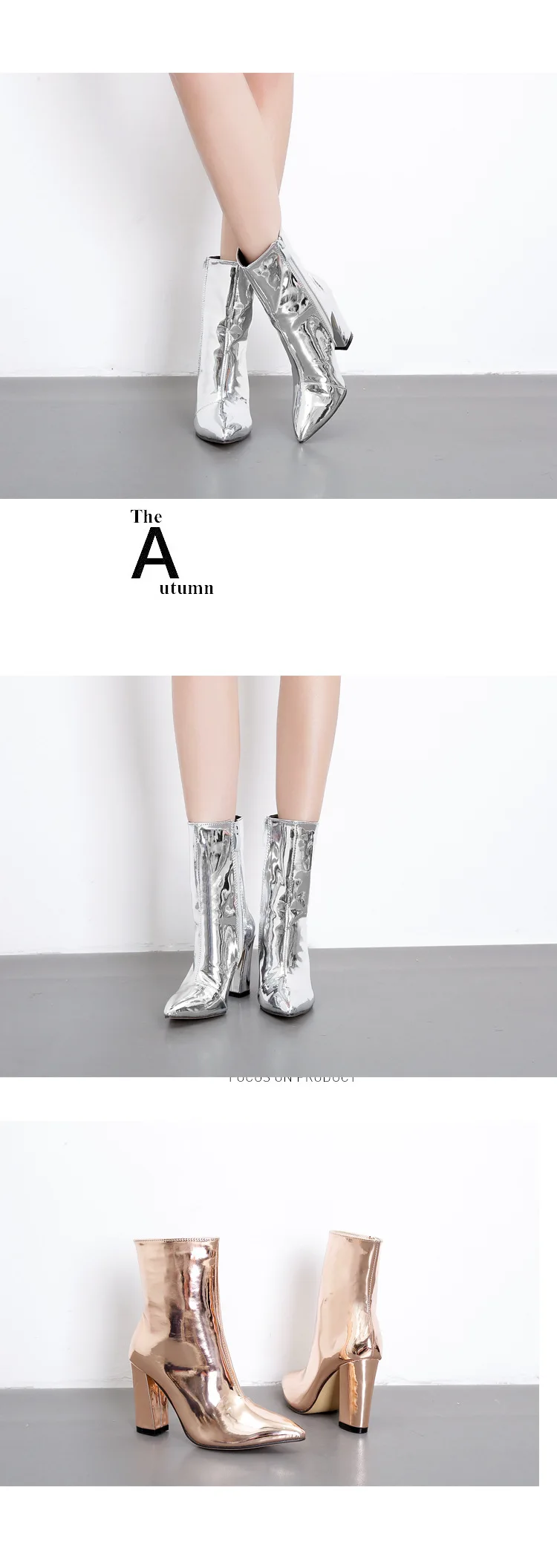 Модные женские ботильоны из лакированной кожи золотого и серебряног...
