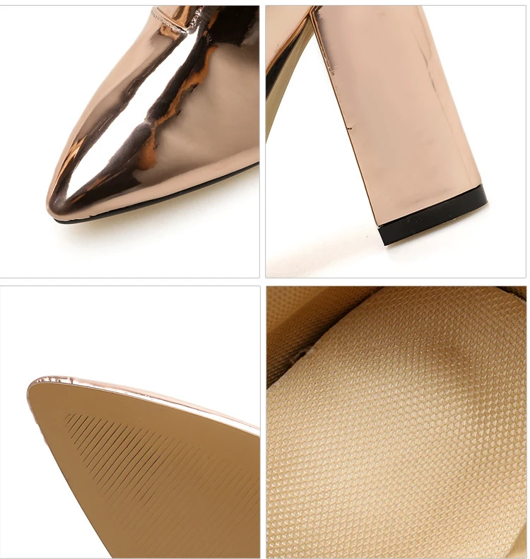 Женские ботильоны серебристого и золотого цвета, с острым носком, на высоком массивном каблуке, зеркальные, металлические, женские туфли-лодочки, женские сексуальные шпильки, Grapara
