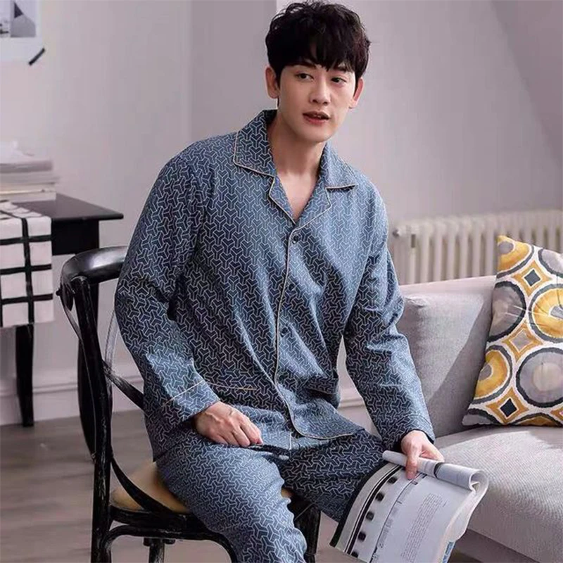 Пижамный комплект мужской с длинным рукавом, комплект из топа и брюк, простая одежда для сна, хлопковая верхняя одежда для отдыха, весна-лето
