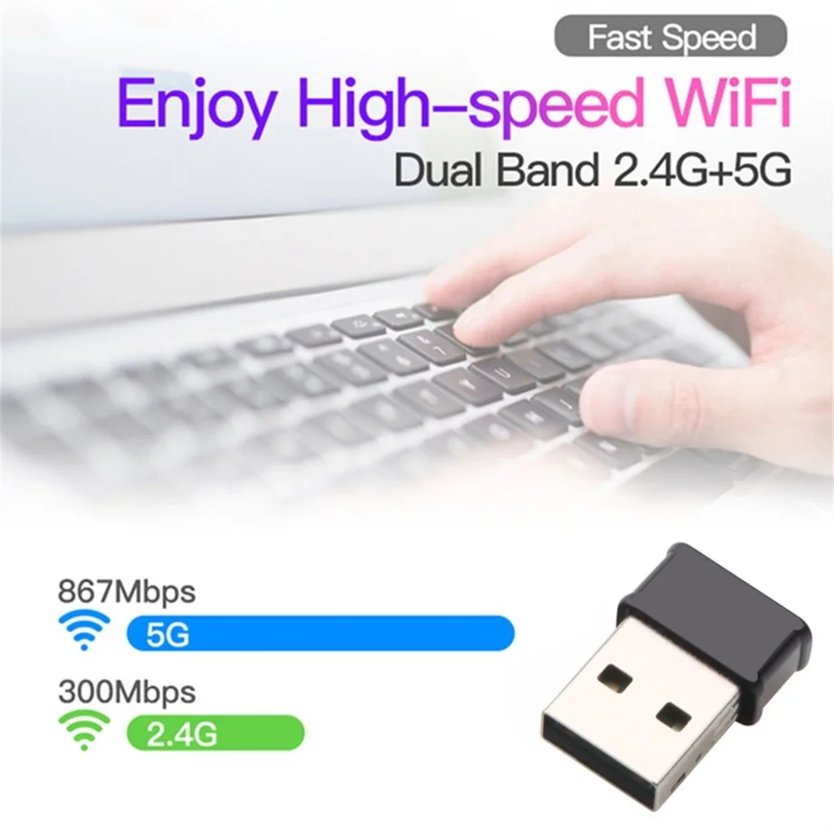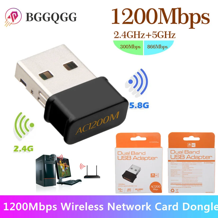 Сетевая карта для ноутбука, настольного ПК, 1200 Мбитс, 2,4 ГГц, 5,8 ГГц, двухдиапазонный USB беспроводной Wi-Fi адаптер, USB 3.0 интерфейс 802.11AC, высокая скорость