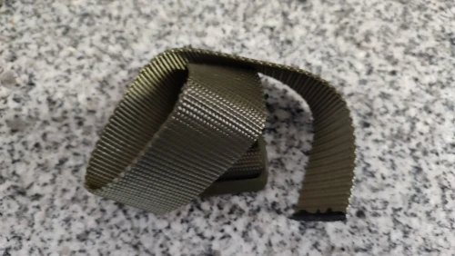 Ремень сделан качественно, пряжка-рамка пластмассовая, полукольцо металлическое.