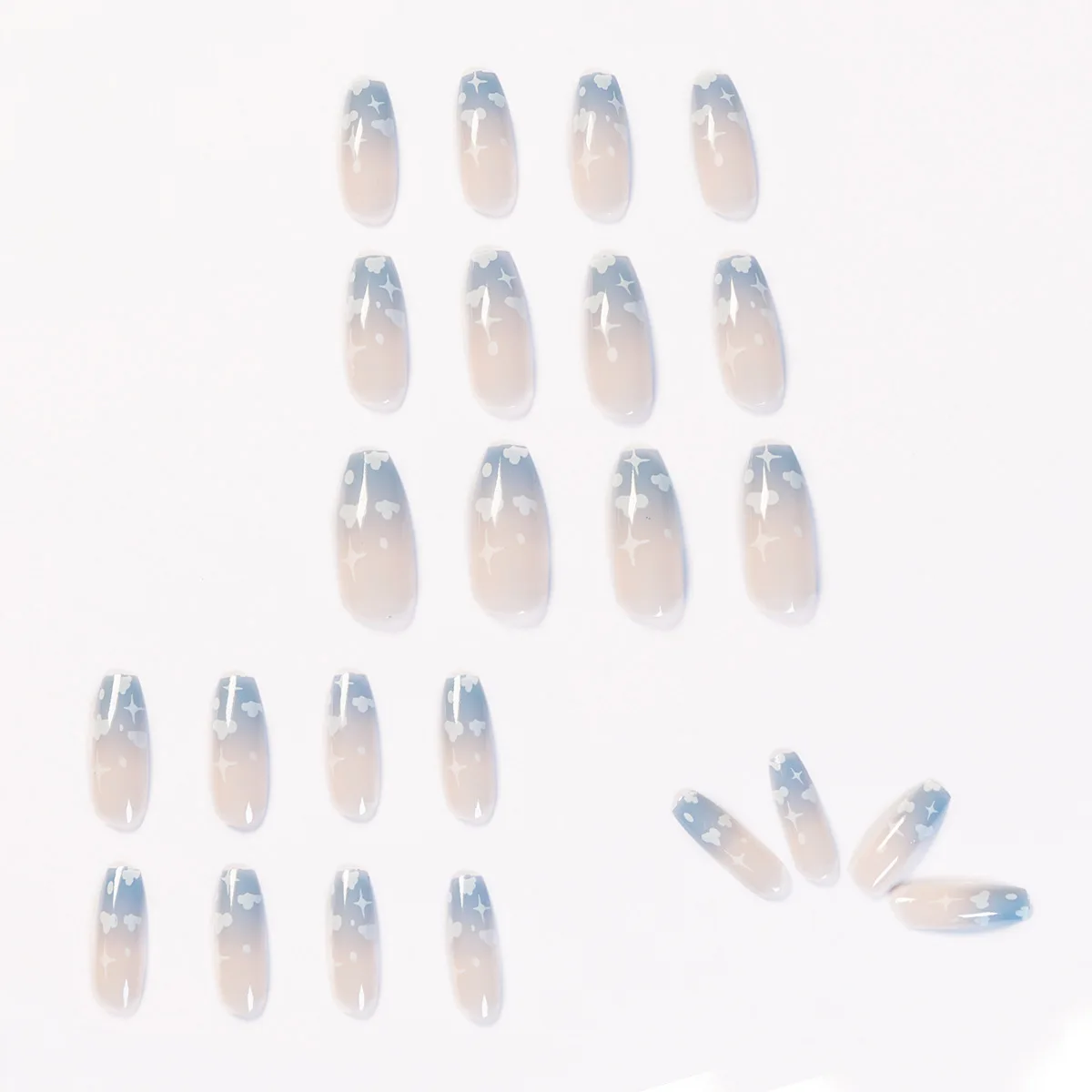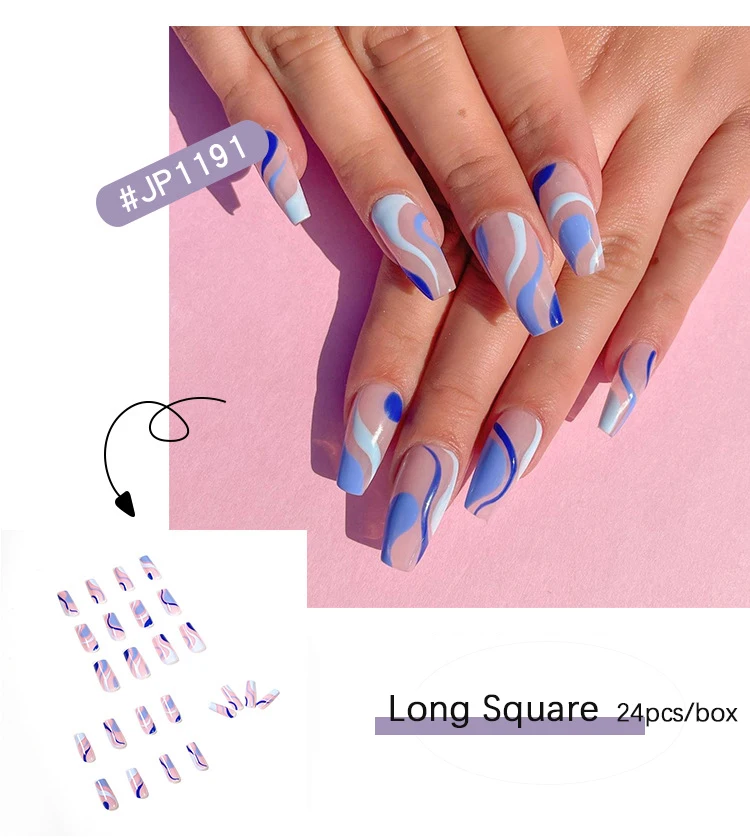 Накладные ногти французские облака, длинные синие накладные ногти в форме гроба, накладные ногти с полным покрытием, 24 шт.компл.