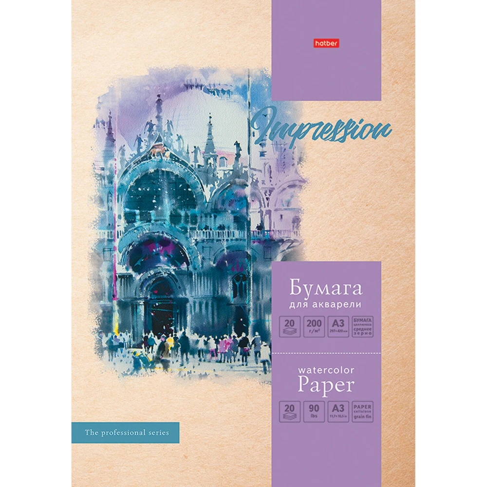 Папка для акварели БОЛЬШОГО ФОРМАТА А3, 20 л, 200 г м2, HATBER, 297х420 мм, "Венеция", 20Ба3тВ_22166