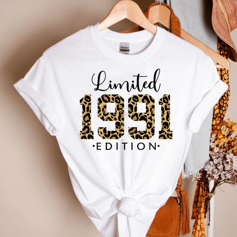 Рубашка Ограниченная серия 1991, футболка из розового золота для вечеринки в честь Дня Рождения 1991, винтажная рубашка 1991, рубашка с леопардовым принтом 1991, женские футболки