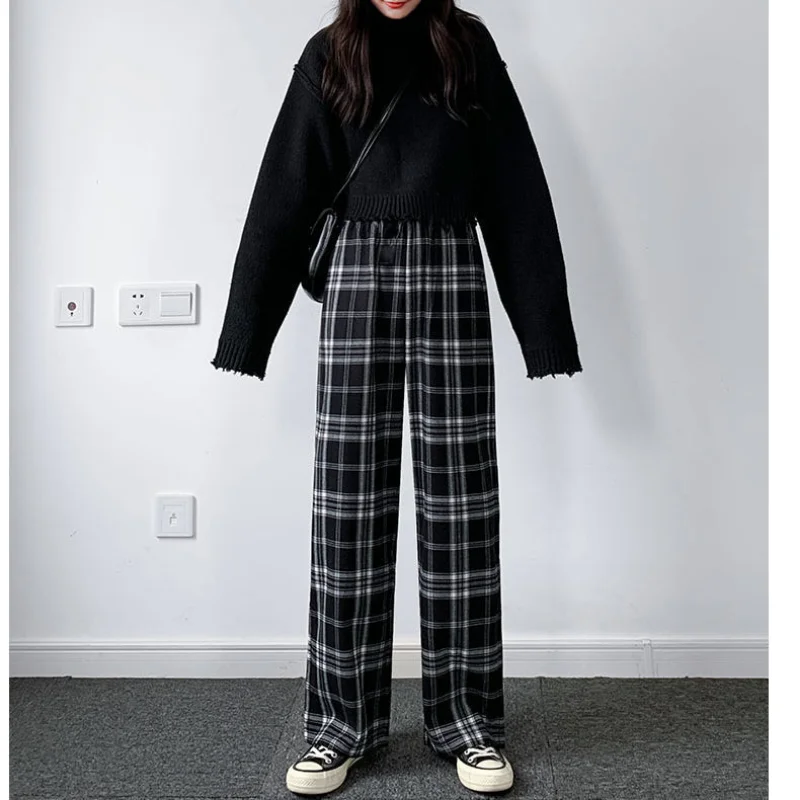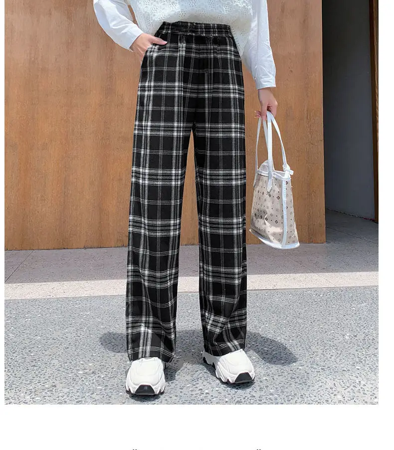 Женские брюки большого размера, в клетку, с широкими штанинами, с завышенной талией, в Корейском стиле, на весну, 2021