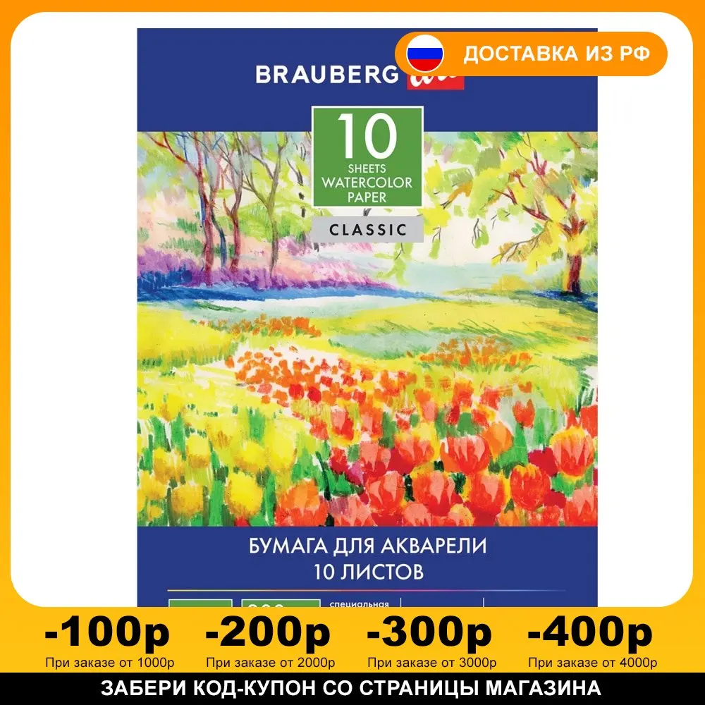 Содержит 10 листов формата А3 297х420 мм. Белизна 100%. Качественные листы высокой плотности 200 г/м2 устойчивы к истиранию, воздействию влаги, обеспечивают чистую реалистичную передачу цвета. Обложка выполнена из мелованного картона. Бумага для акварели BRAUBERG это основа для создания красочных работ. Спешите приобрести товары для первых творческих шагов в нашем интернет-магазине!