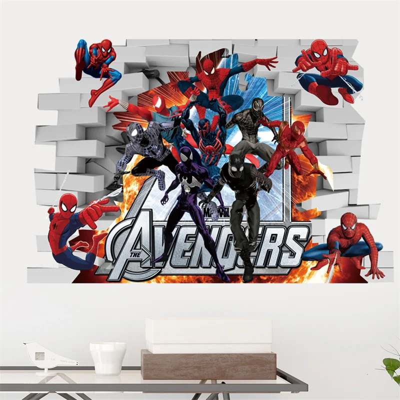 3D наклейки на стену Человек-паук Мстители для детской комнаты укра...