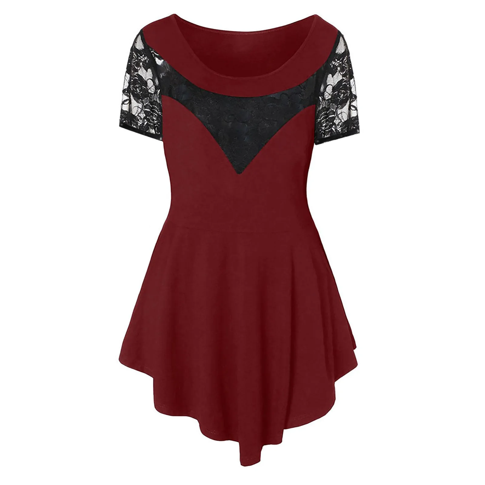 1. Особенности: размера плюс, однотонные, с цветочным рисунком, кружевом, с О-образным вырезом, асимметричная, с рукавом три четверти, топы, блузы, стильный и модный дизайн, простой, топ, модная блуза