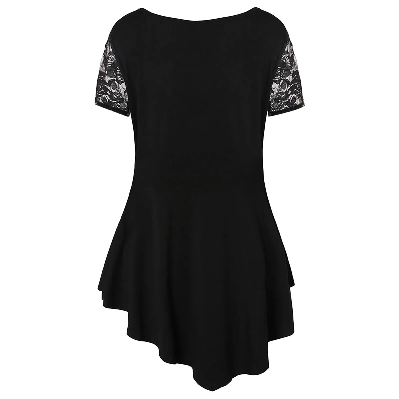 Женская ажурная блузка с цветочным кружевом, Летняя асимметричная блузка большого размера с оборками, размеры 5XL