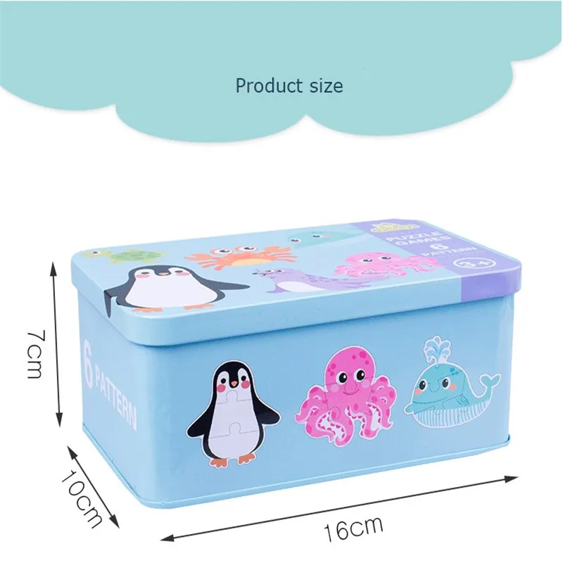 Деревянные игрушки-пазлы, игра, железная коробка, Мультяшные 3D гол...