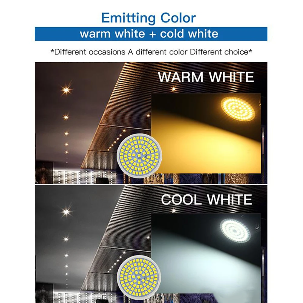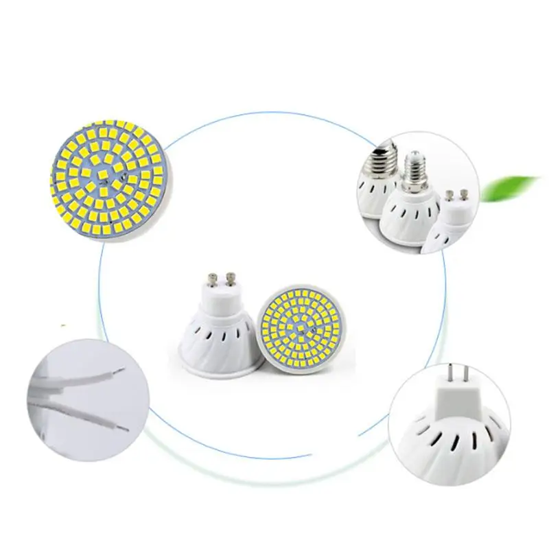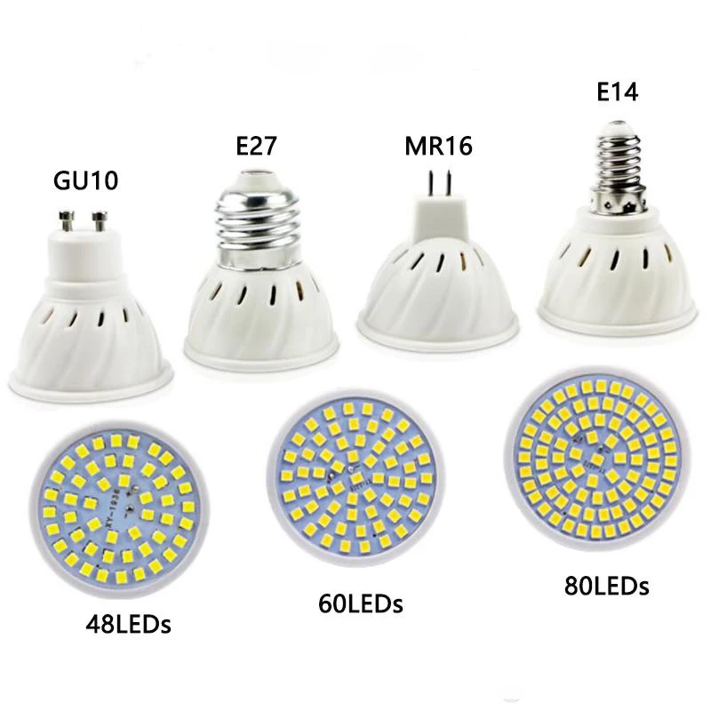 Низкое потребление и высокая яркость SMD2835 чип. CRI 80 +, покажите свое окружение в истинных и естественных цветах. Широкий угол луча обеспечивает яркое освещение в широкой области. Длительный срок службы, уменьшает частоту повторной лампы. Применение, включая дом, окно магазина, витрину, студию, другое Внутреннее освещение. Характеристики: Наименование товара: светодиодный прожектор Тип цоколя: E27/E14/B22/MR16/GU10 Количество СВЕТОДИОДНЫЙ: 48 Светодиодный s / 60 Светодиодный s / 80 светодиодный s Напряжение: 220-240 В переменного тока Тип светодиодный: SMD2835 Угол луча: 180 ° Регулировка яркости: нет Материал: пластик Цвет и температура: Теплый белый (2800-3200K); Холодный белый (6000-6500K)