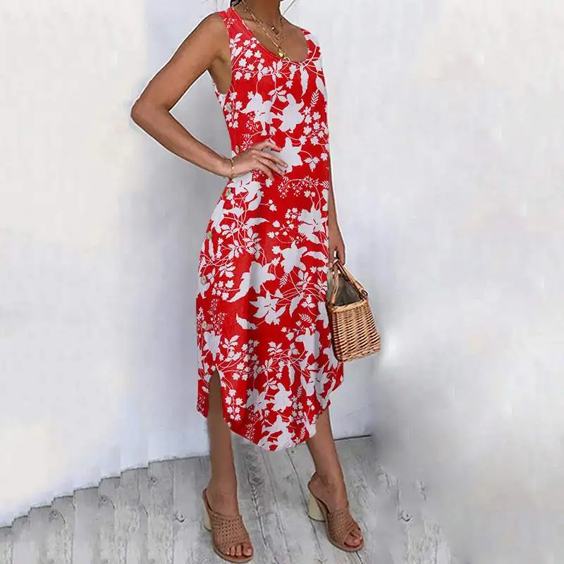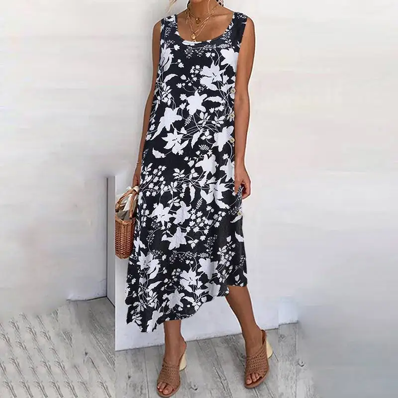Сарафан женский без рукавов, с цветочным принтом, с круглым вырезом