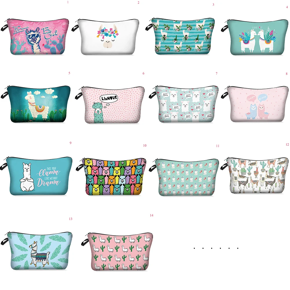 Смешные животные рисунок Альпака чехол для косметики милая сумка для хранения женские сумки для макияжа лама Ленивец косметичка органайзер для путешествий