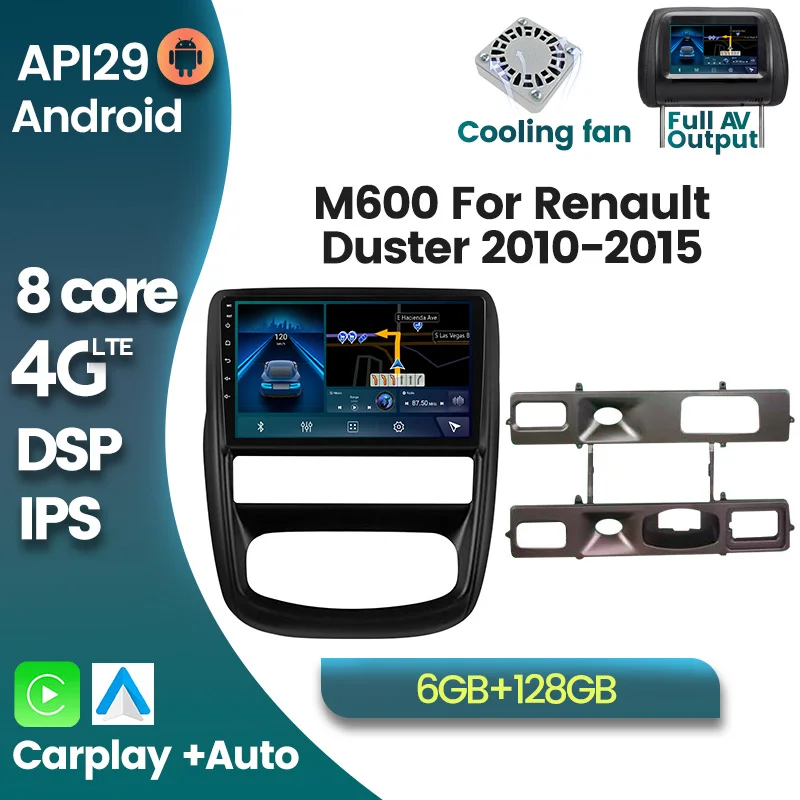 Автомагнитола с GPS Навигатором для Renault Duster 128-2015 Nissan Terrano 2010-2014, Типоразмер 29 дюймов, Android 10, 6 + 2020G DSP IPS
