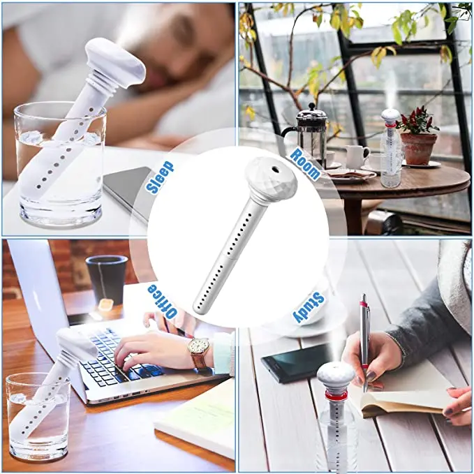 Без бутылки с водой: вам больше никогда не придется переносить сухой воздух с этим usb-увлажнителем воздуха; Простой дизайн, без резервуара для воды, просто положите увлажнитель в любую чашку для воды или бутылку с минеральной водой, затем вы можете наслаждаться влажным воздухом, более комфортным дыханием
